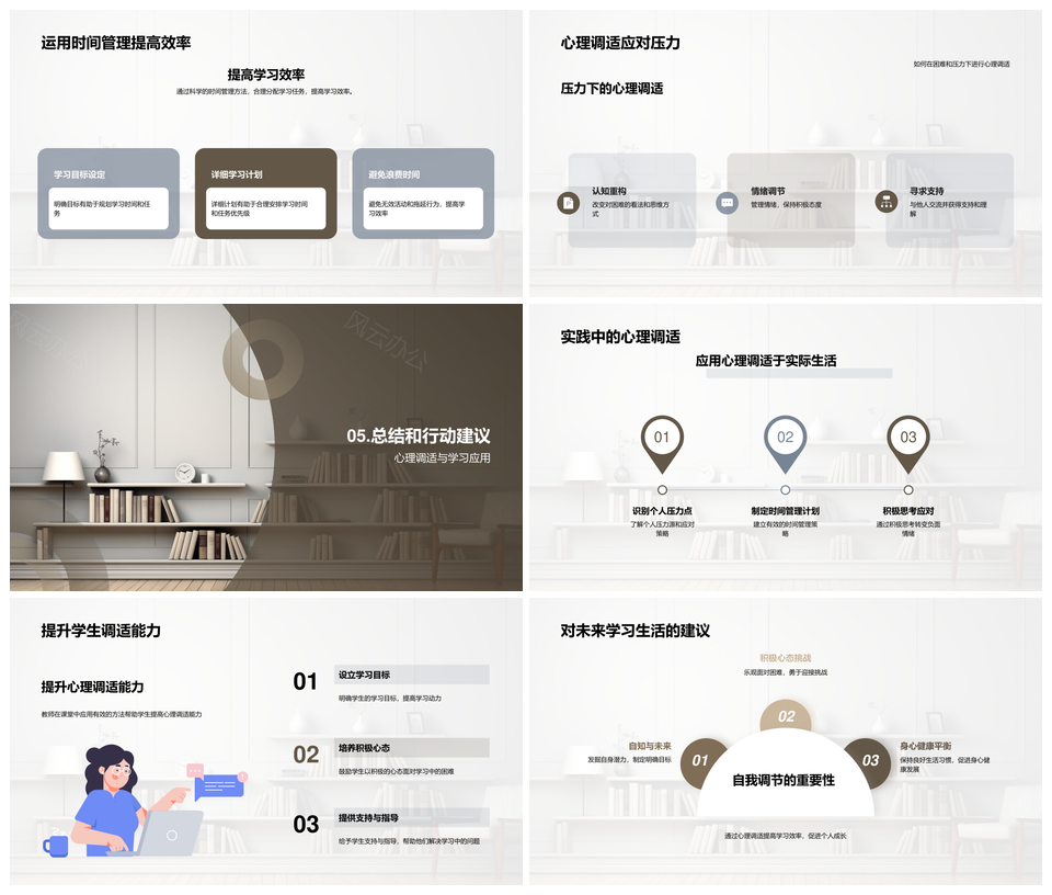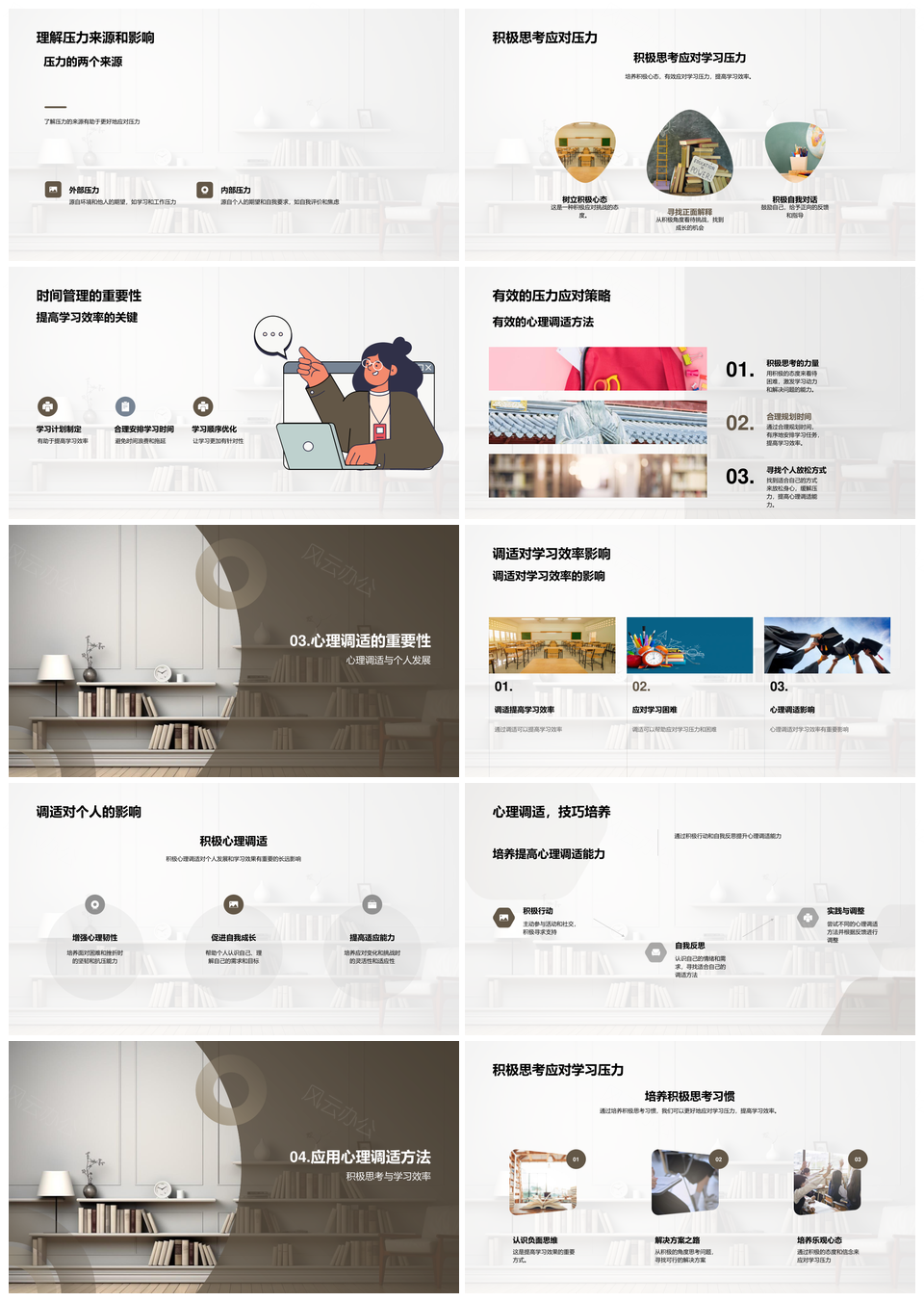 风云办公提供的心理调适提升学习效能应对压力动力PPT模板,下载格式为pptx,一共24页,作品中文字及图均可以修改和编辑,图片更改请在作品中右键图片并更换,文字修改请直接点击文字进行修改。