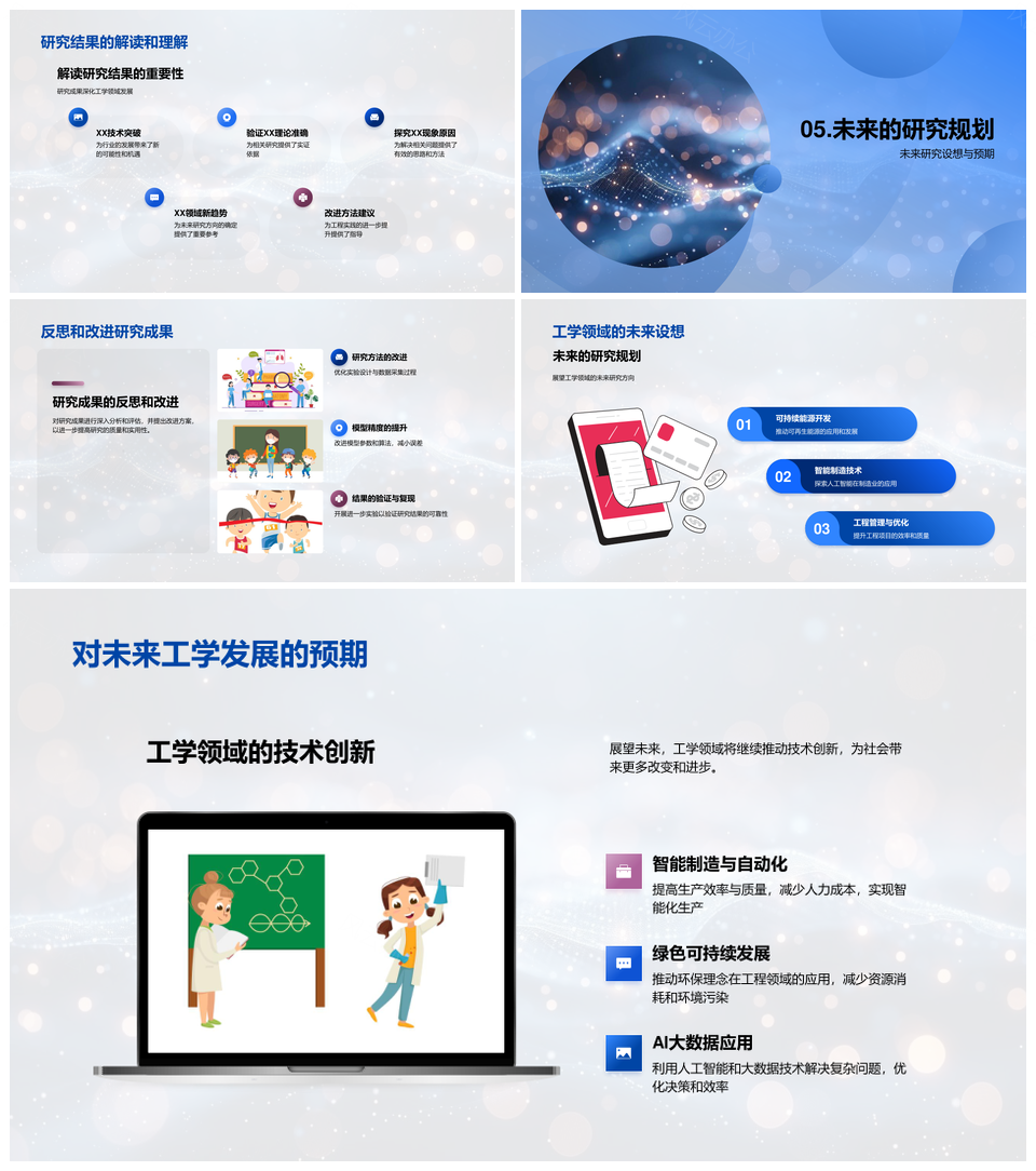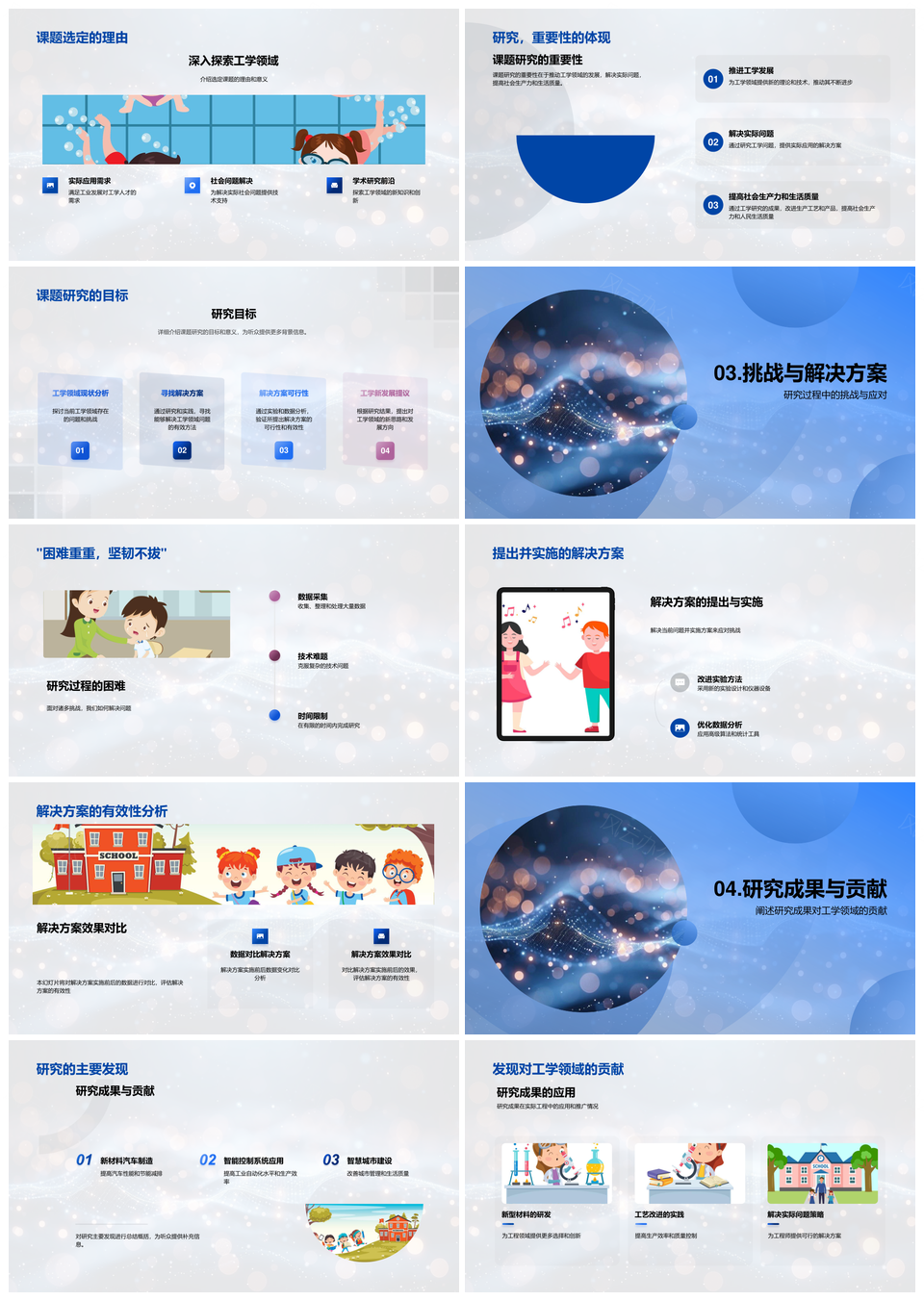 工学毕业答辩研究目标挑战解决历程影响PPT模板推荐