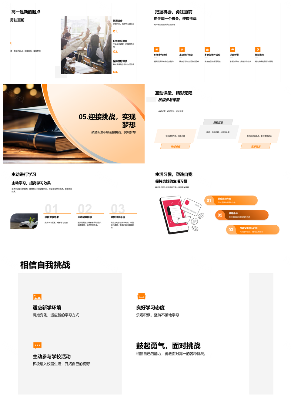 2025高一新篇章挑战自主语数英理念全面发展书启PPT模板