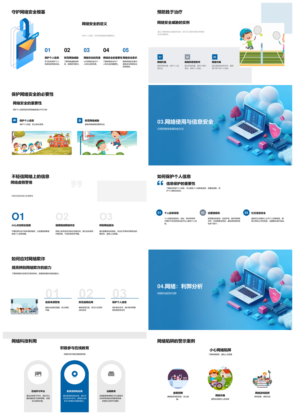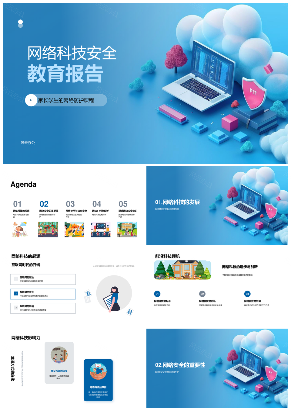 风云办公提供的网络科技安全防护课程培训课件,下载格式为pptx,一共23页,作品中文字及图均可以修改和编辑,图片更改请在作品中右键图片并更换,文字修改请直接点击文字进行修改。
