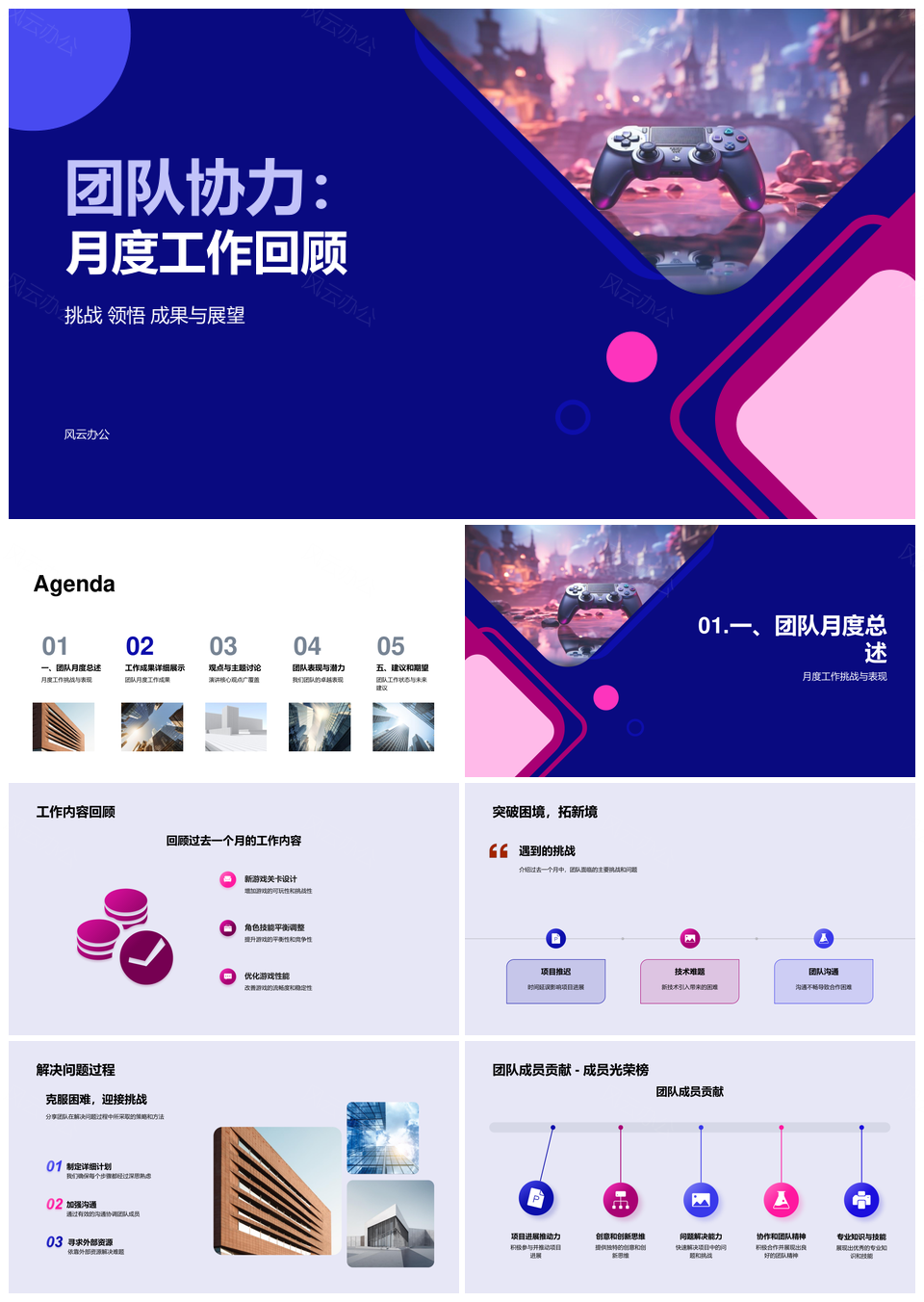 风云办公提供的游戏设计团队协力月度贡献成果总结PPT模板,下载格式为pptx,一共28页,作品中文字及图均可以修改和编辑,图片更改请在作品中右键图片并更换,文字修改请直接点击文字进行修改。