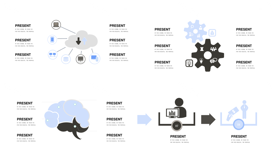 风云办公提供的淡雅浅蓝商务总分关系数据关系PPT图表合集,下载格式为pptx,一共31页,作品中文字及图均可以修改和编辑,图片更改请在作品中右键图片并更换,文字修改请直接点击文字进行修改。