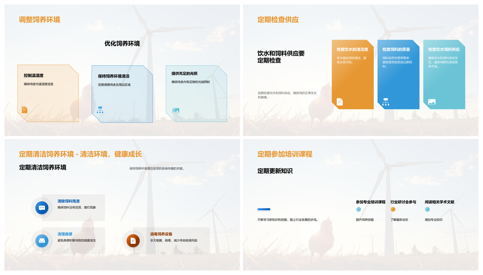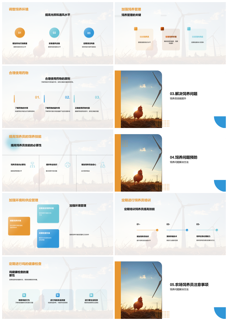 这是一张鸡饲养常见问题兽医农场员解答饮水饲料PPT模板,包含鸡饲养、常见问题、兽医、农场员、解答、饮水、饲料等主题内容,也可用作饲养常见问题兽医农场员解答、兽医农场员解答饮水饲料问题、常见问题兽医农场员解答、农场员解答饮水饲料问题、兽医解答饲养常见问题、饲养常见问题饮水饲料、常见问题饮水饲料解答、农场员解答饮水饲料、兽医农场员解答问题、解答饲养饮水饲料、饲养饮水饲料问题、常见问题兽医解答、兽医解答饮水饲料、农场员饮水饲料、饲养常见问题等PPT场景使用。 风云办公提供的鸡饲养常见问题兽医农场员解答饮水饲料PPT模板,下载格式为pptx,一共22页,作品中文字及图均可以修改和编辑,图片更改请在作品中右键图片并更换,文字修改请直接点击文字进行修改。