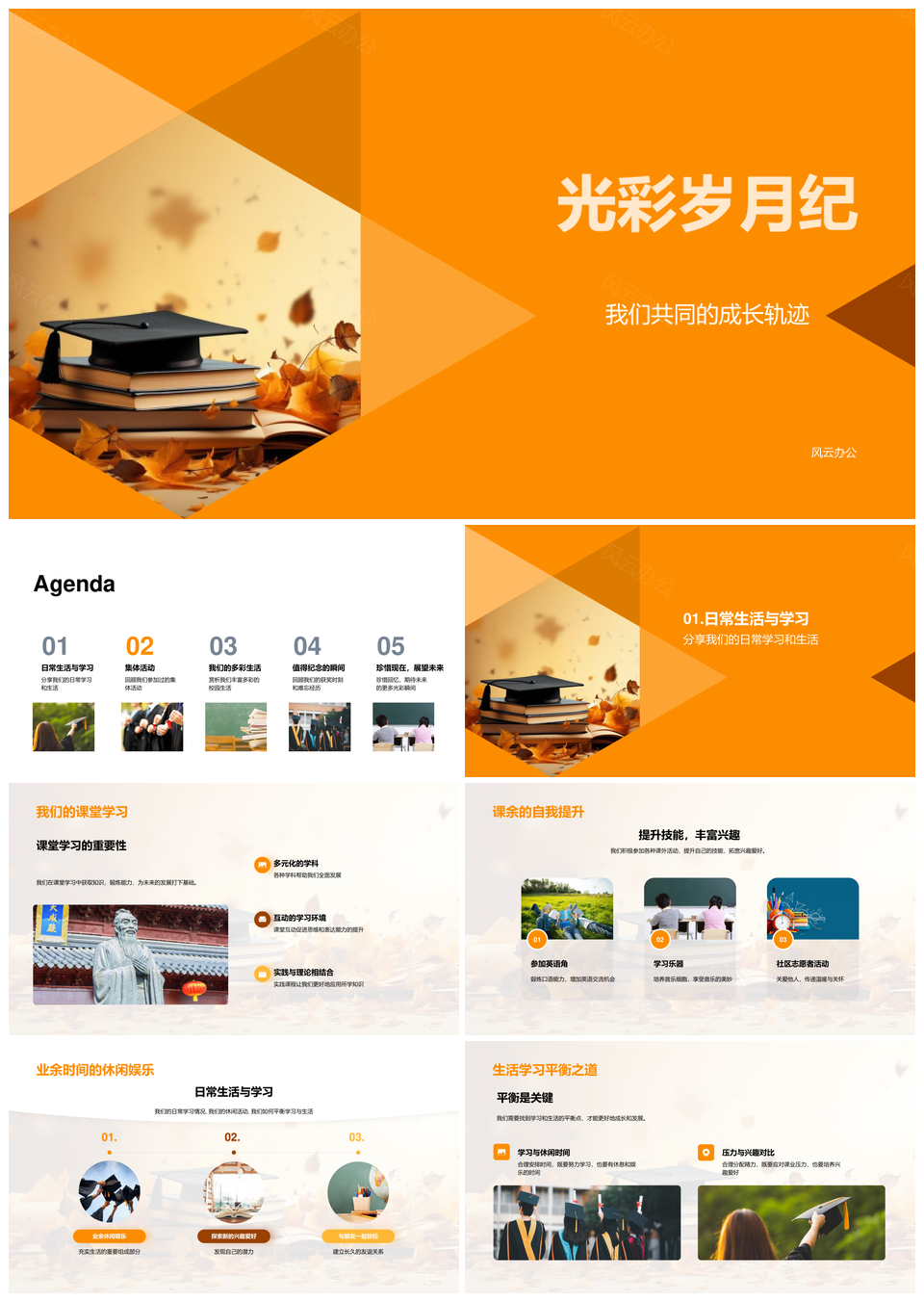 风云办公提供的学途欢歌荣光足迹影辑毕业礼PPT模板,下载格式为pptx,一共28页,作品中文字及图均可以修改和编辑,图片更改请在作品中右键图片并更换,文字修改请直接点击文字进行修改。