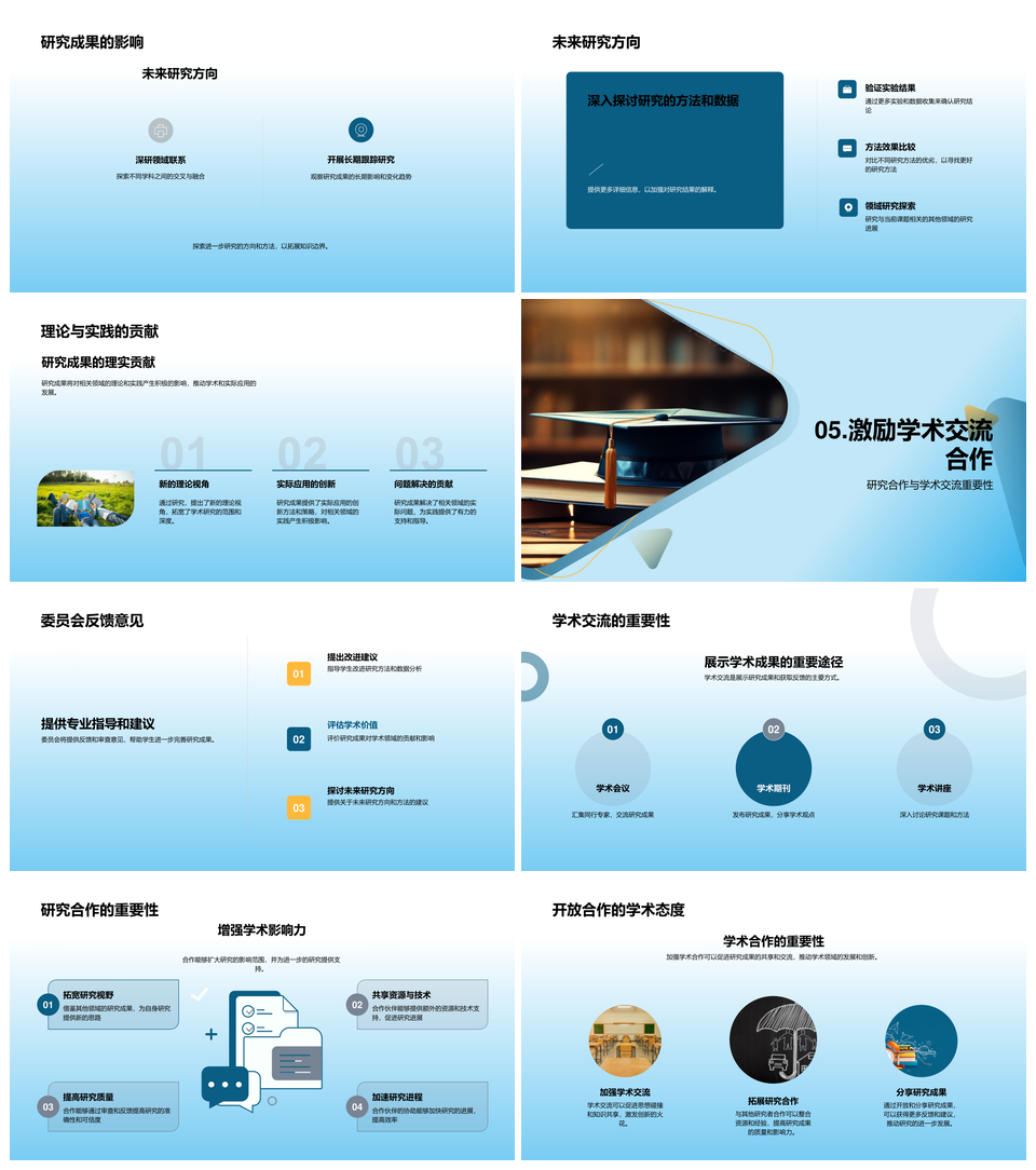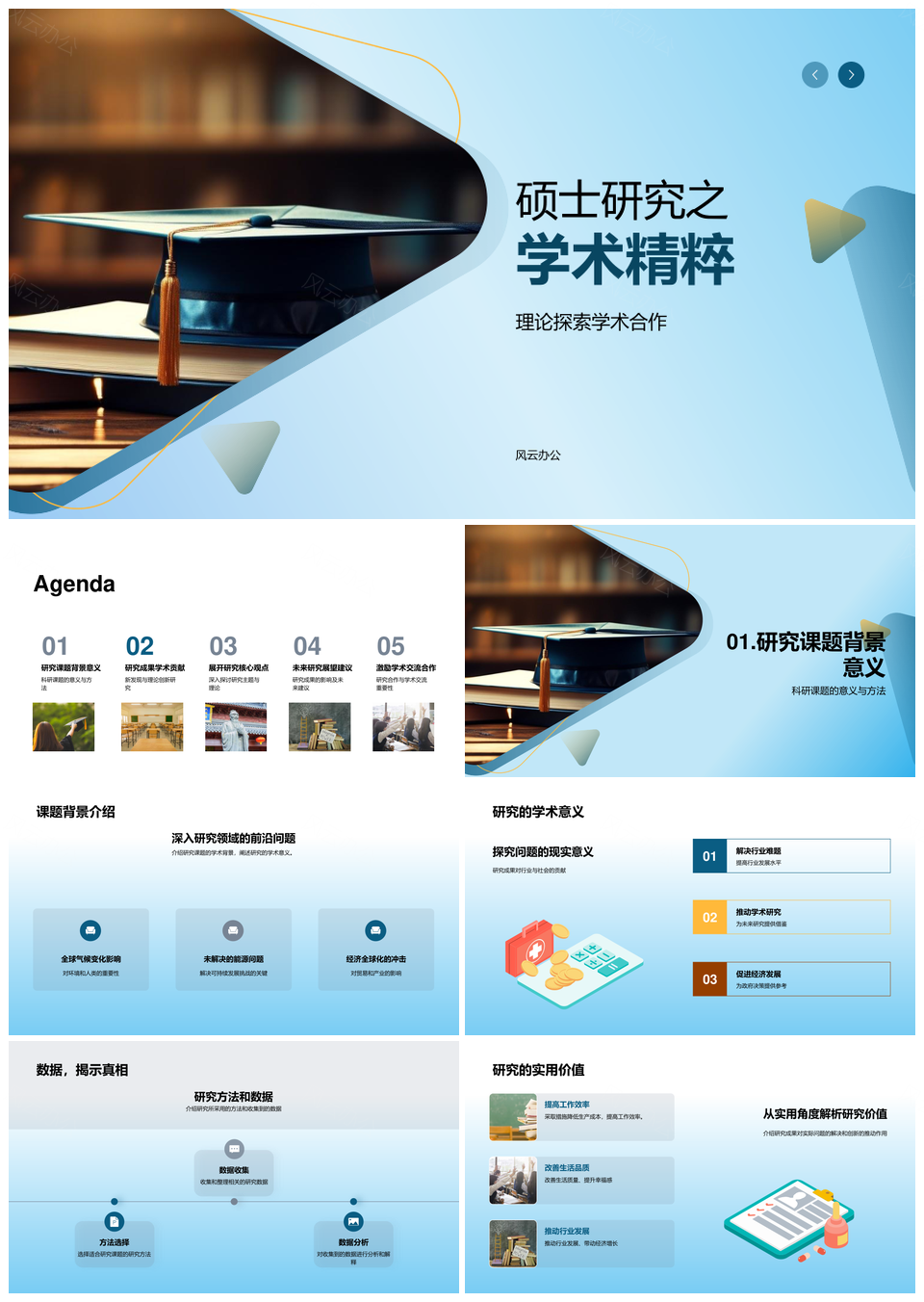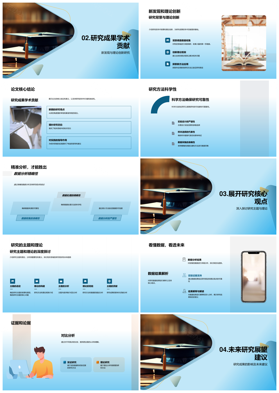 硕士研究成果方法实践数据分析创新局限教育毕业帽PPT模板