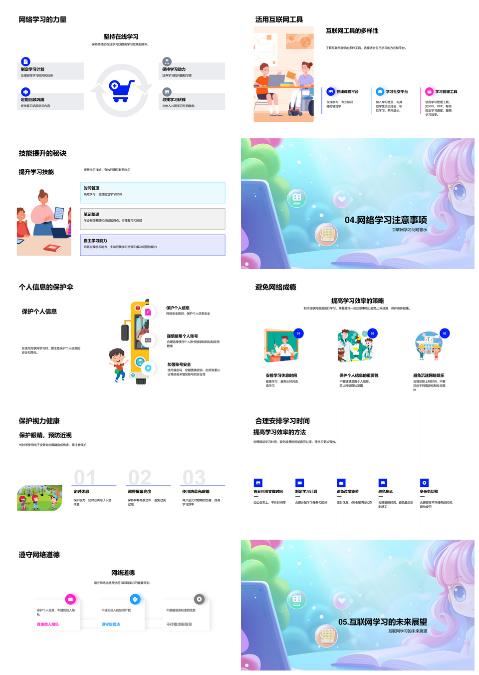 风云办公提供的互联网教育高效学习安全健康防护PPT模板,下载格式为pptx,一共33页,作品中文字及图均可以修改和编辑,图片更改请在作品中右键图片并更换,文字修改请直接点击文字进行修改。