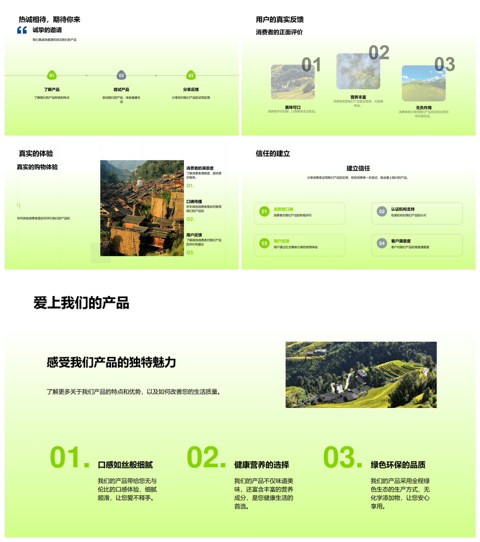 这是一张绿色田野生态生产健康生活精品PPT模板,包含绿色田野、生态生产、健康生活、精品等主题内容,也可用作绿色田野生态生产、绿色田野生态、绿色田野生态生产健康、绿色田野生态生产健康生活、绿色田野生态生产健康生活精品、田野生态生产健康、田野生态生产健康生活、田野生态生产健康生活精品、生态生产健康生活、生态生产健康生活精品、生产健康生活精品、健康生活精品、绿色田野、田野生态、生态生产、生产健康、健康生活、生活精品等PPT场景使用。