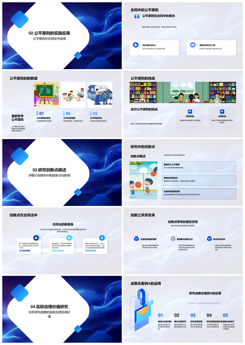 风云办公提供的合同法本科答辩公平原则创新应用研究PPT模板,下载格式为pptx,一共24页,作品中文字及图均可以修改和编辑,图片更改请在作品中右键图片并更换,文字修改请直接点击文字进行修改。