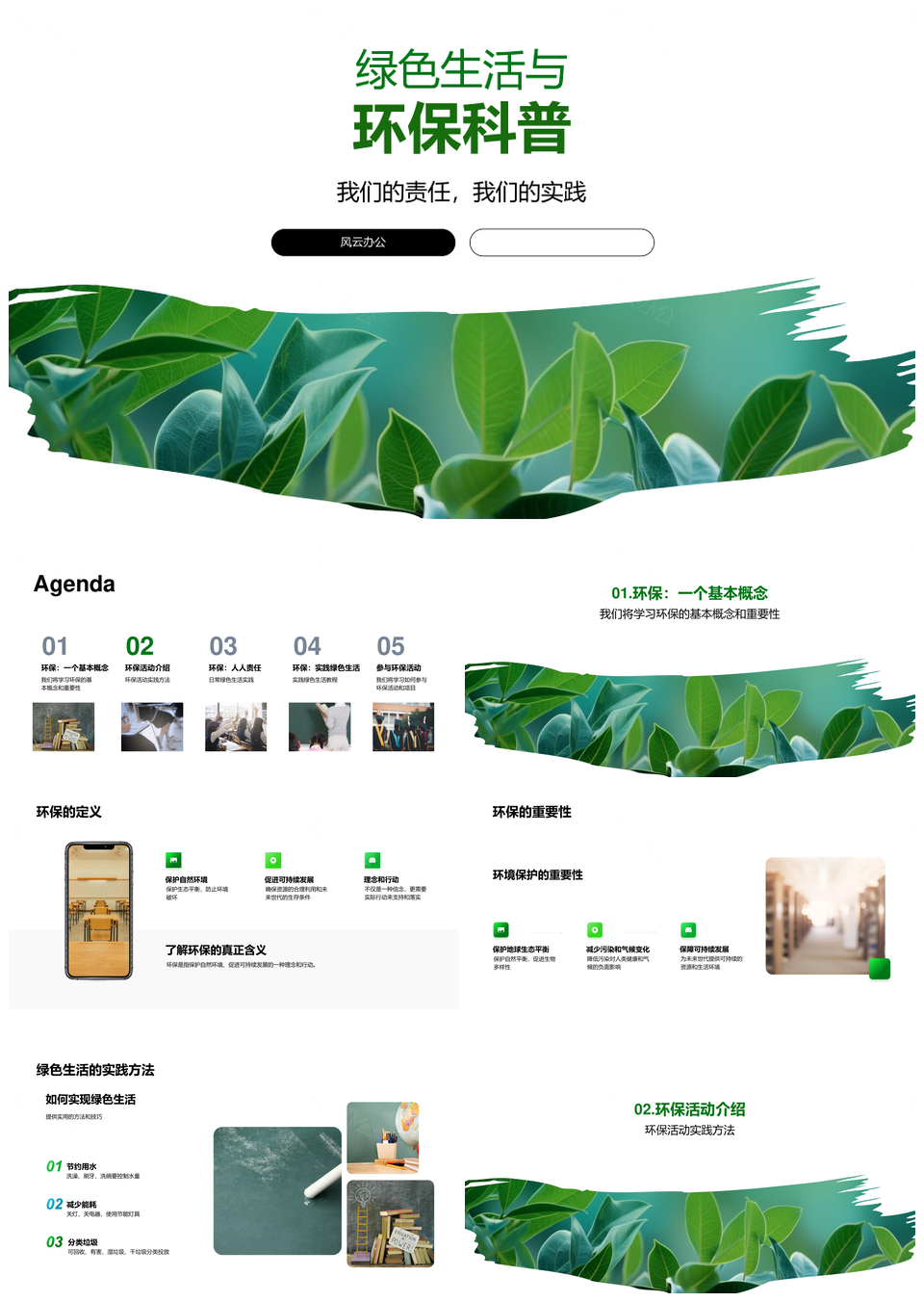 风云办公提供的绿色生活环保科普意义与节约减废策略PPT模板,下载格式为pptx,一共25页,作品中文字及图均可以修改和编辑,图片更改请在作品中右键图片并更换,文字修改请直接点击文字进行修改。