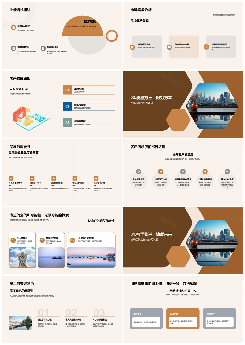 这是一张餐饮卓越团队精服务优品质促增长赢满意PPT模板,包含餐饮、卓越团队、精服务、优品质、促增长、赢满意等主题内容,也可用作餐饮卓越团队精服务、卓越团队精服务优品质、团队精服务优品质促增长、精服务优品质促增长赢满意、餐饮卓越团队服务优、卓越团队服务优品质促、团队服务优品质促增长、服务优品质促增长赢、餐饮卓越团队优品质、卓越团队优品质促增长、团队优品质促增长赢、餐饮卓越促增长赢满意、餐饮卓越团队促增长、卓越团队促增长赢满意、服务优品质促增长等PPT场景使用。 风云办公提供的餐饮卓越团队精服务优品质促增长赢满意PPT模板,下载格式为pptx,一共23页,作品中文字及图均可以修改和编辑,图片更改请在作品中右键图片并更换,文字修改请直接点击文字进行修改。