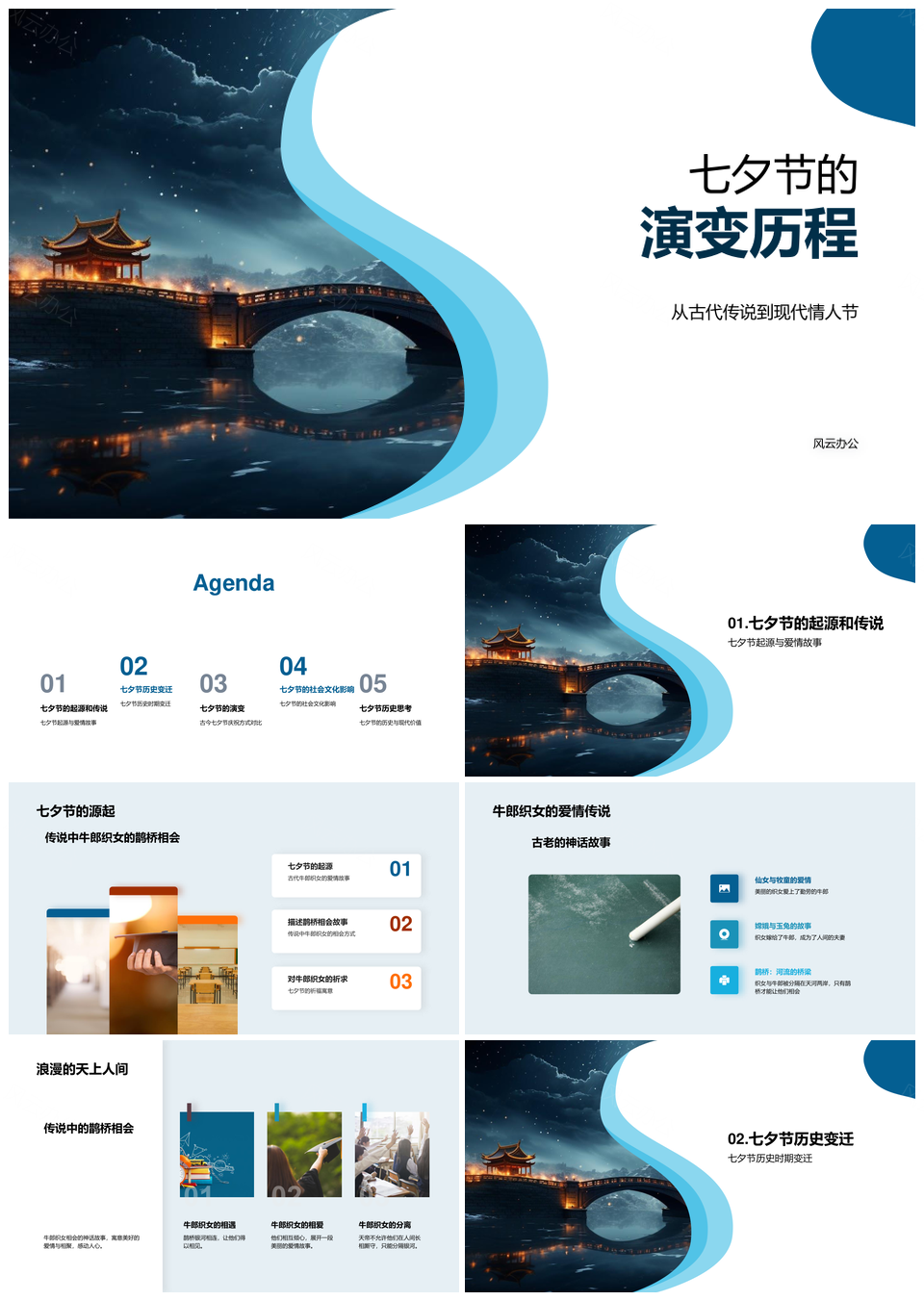 2025七夕牛郎织女历史演变文化融合PPT模板