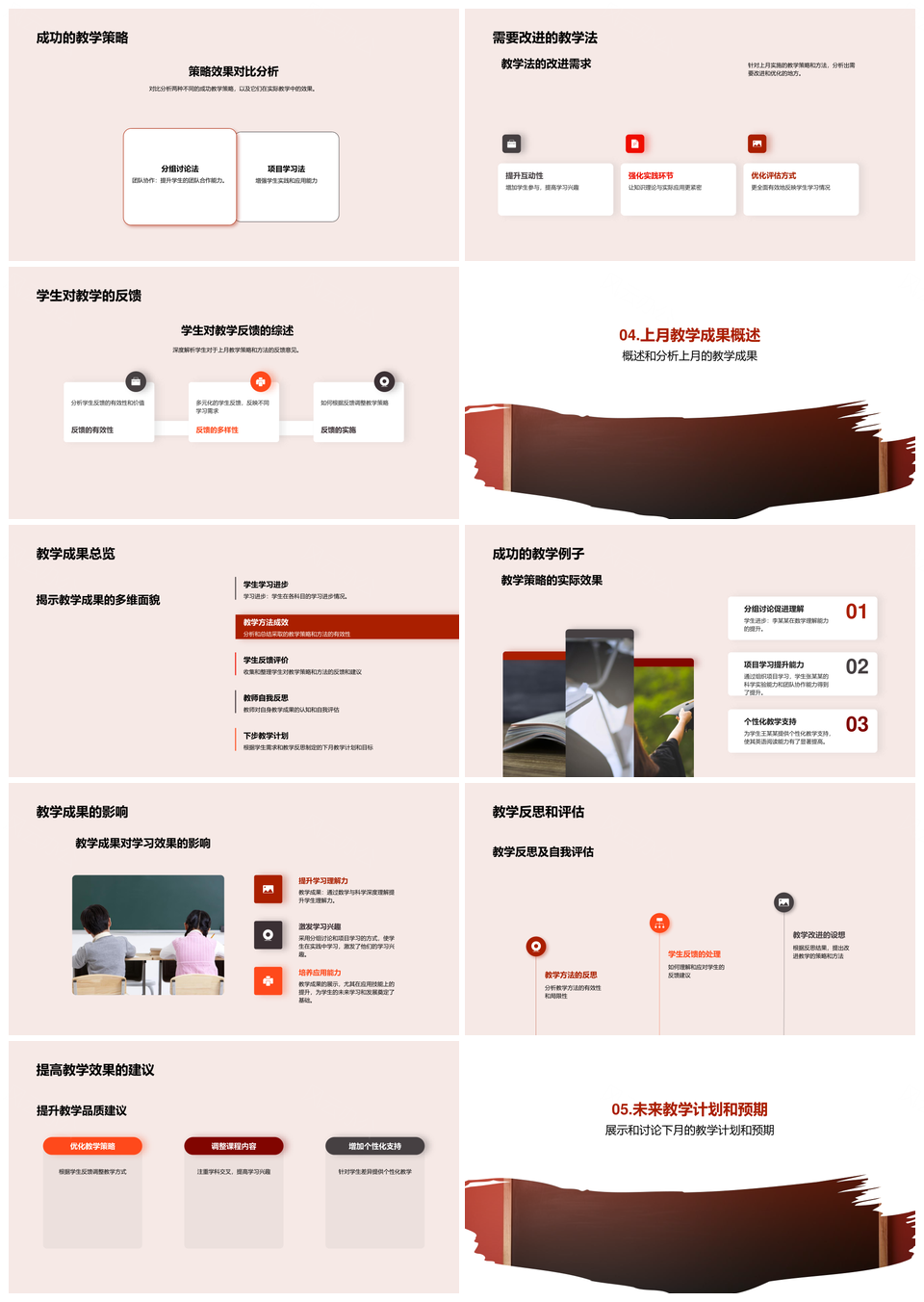 教学反思前瞻策略目标计划进步成绩成果PPT模板推荐