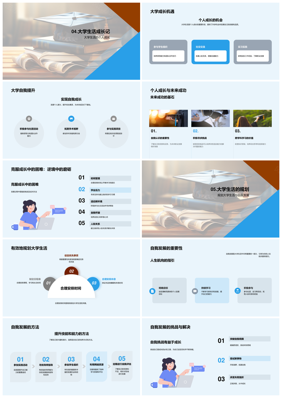 大学生活规划挑战成长教育安全学业兴趣发展PPT模板