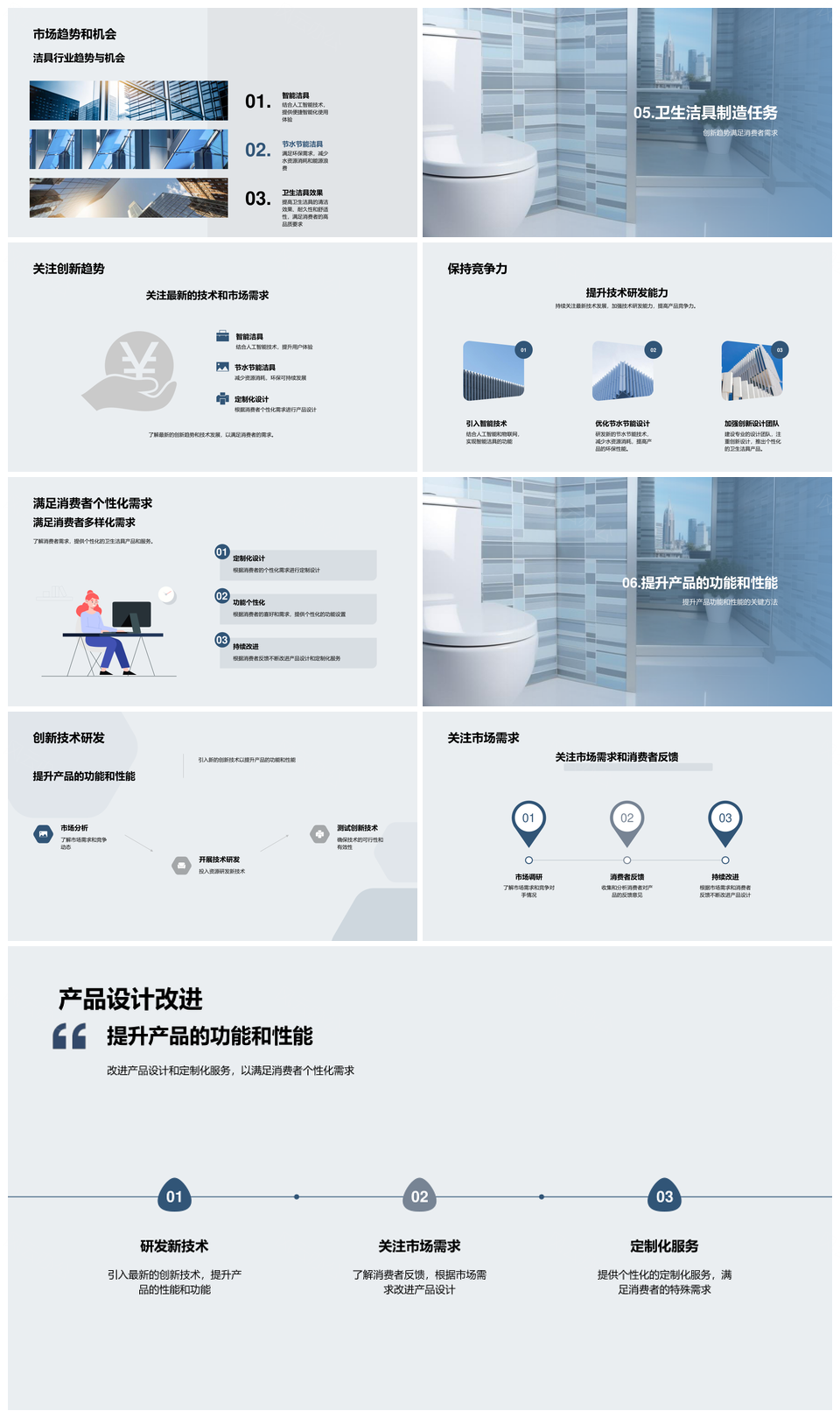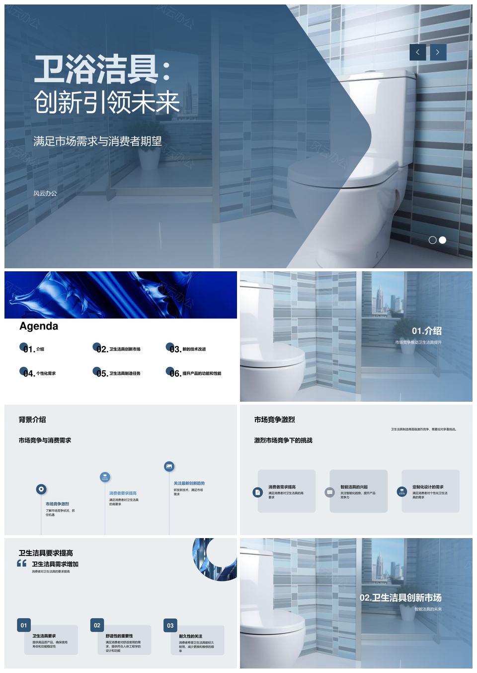 风云办公提供的卫浴创新技术竞逐马桶市场未来PPT模板,下载格式为pptx,一共27页,作品中文字及图均可以修改和编辑,图片更改请在作品中右键图片并更换,文字修改请直接点击文字进行修改。