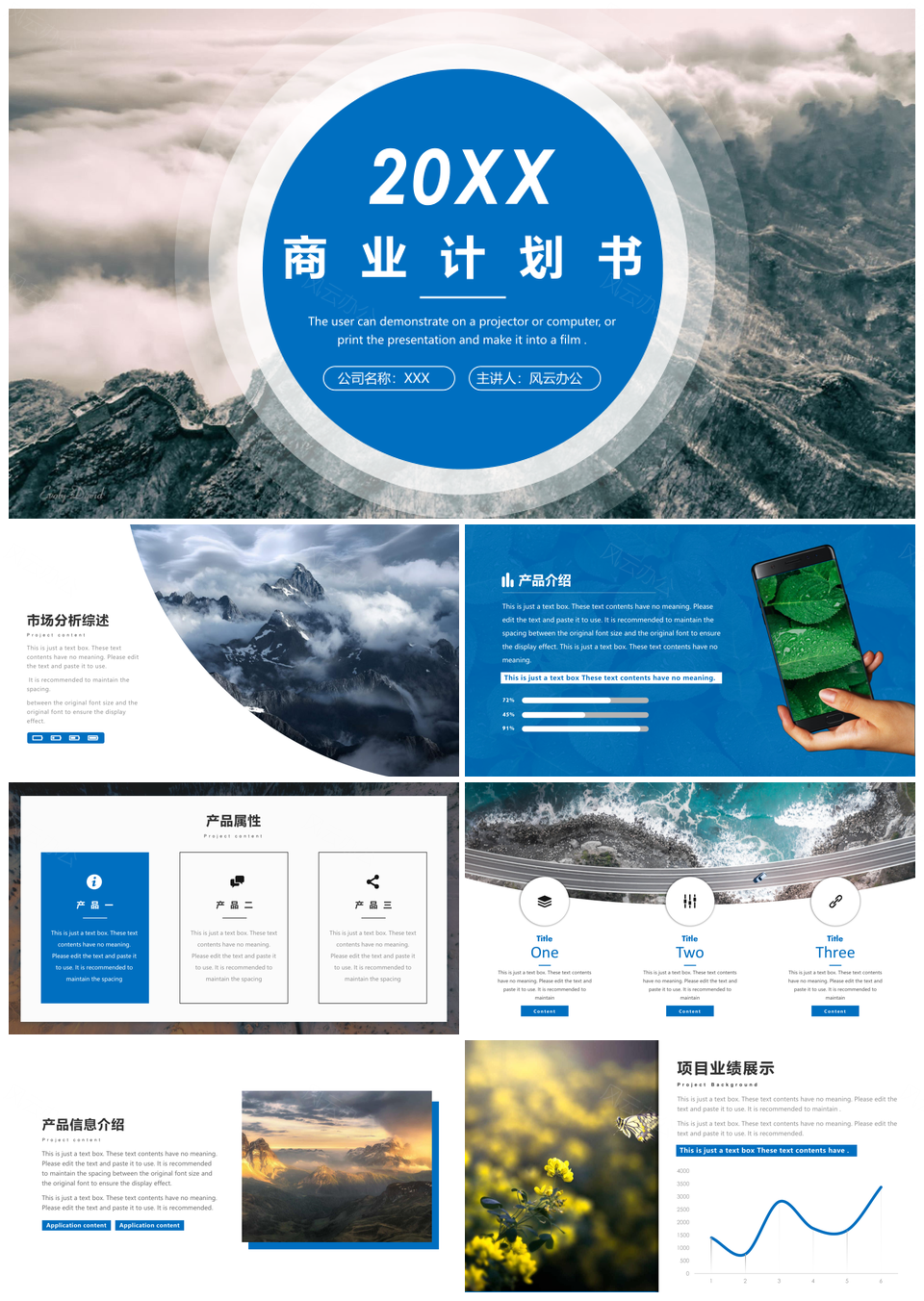 风云办公提供的蓝色大气商务企业商业计划书PPT模板,下载格式为pptx,一共12页,作品中文字及图均可以修改和编辑,图片更改请在作品中右键图片并更换,文字修改请直接点击文字进行修改。