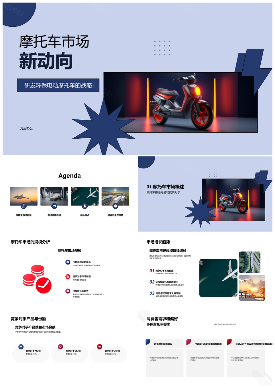 这是一张摩托车市场趋势分析厂商份额环保车型需求PPT模板,包含摩托车市场、趋势分析、厂商份额、环保车型、需求等主题内容,也可用作摩托车市场趋势分析、市场趋势分析厂商、趋势分析厂商份额、厂商份额环保车型、环保车型需求趋势分析、市场趋势环保车型、摩托车厂商份额分析、趋势厂商份额环保、环保车型厂商份额、厂商环保车型需求、市场需求趋势分析、摩托车环保车型需求、市场趋势厂商环保、厂商份额趋势分析、车型需求环保趋势等PPT场景使用。 风云办公提供的摩托车市场趋势分析厂商份额环保车型需求PPT模板,下载格式为pptx,一共29页,作品中文字及图均可以修改和编辑,图片更改请在作品中右键图片并更换,文字修改请直接点击文字进行修改。