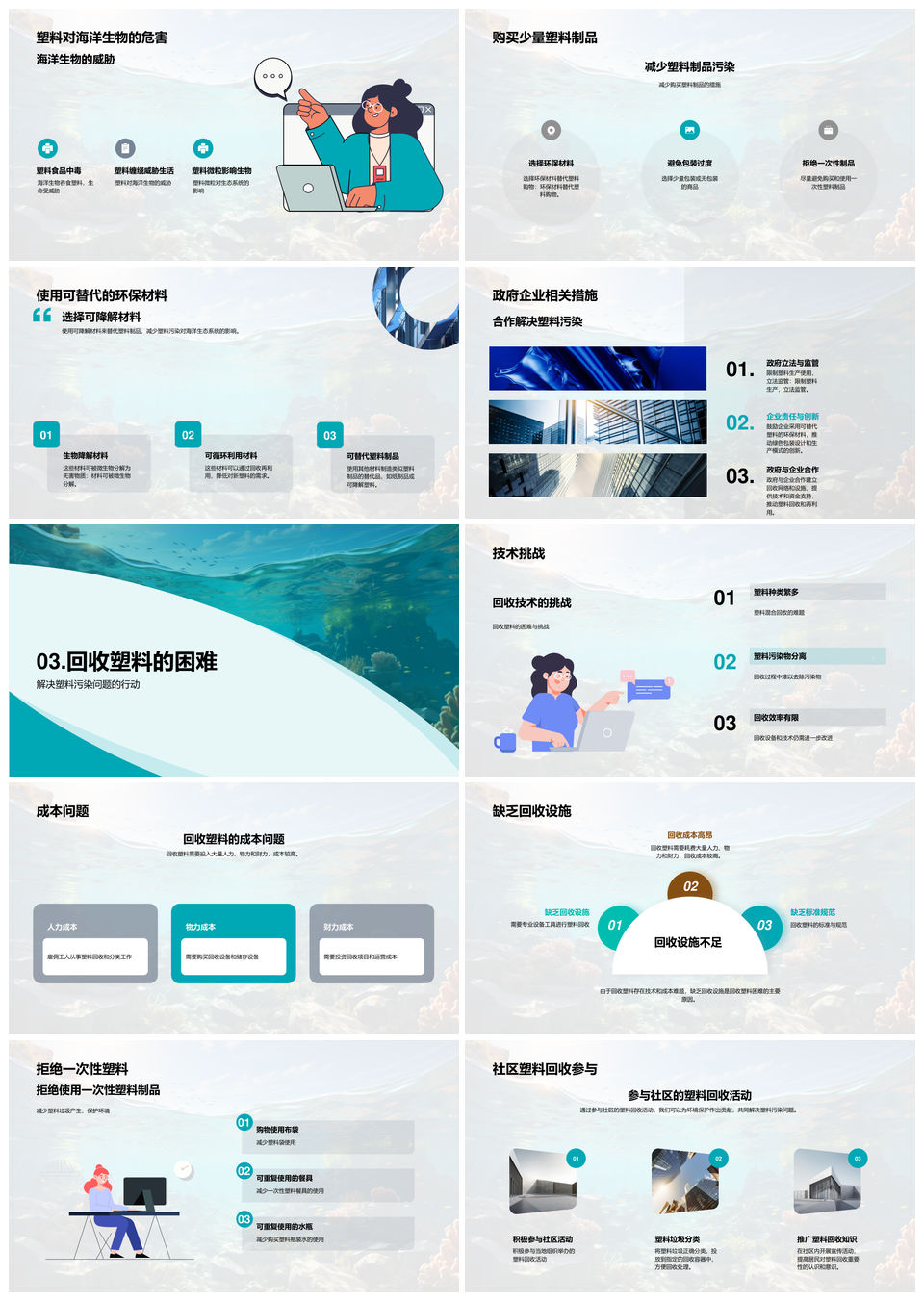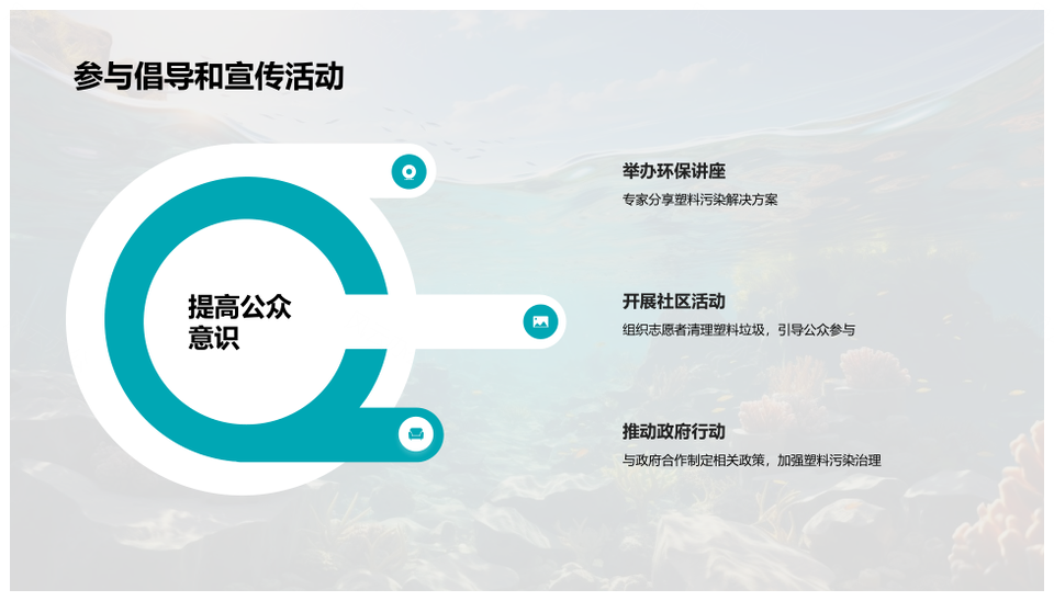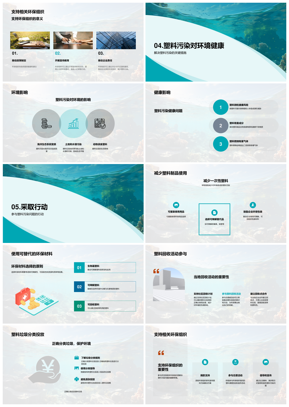 这是一张环保科学家公众携手减塑护海洋生态健康PPT模板,包含环保科学家、公众、携手、减塑、海洋生态、健康等主题内容,也可用作环保科学家公众携手、环保科学家公众减塑、环保科学家公众海洋、环保科学家携手减塑、环保科学家减塑海洋、科学家公众携手减塑、科学家公众减塑海洋、科学家携手减塑海洋、公众携手减塑海洋、公众减塑海洋生态、携手减塑海洋生态、减塑海洋生态健康、环保科学家公众、科学家公众携手、公众携手减塑等PPT场景使用。 风云办公提供的环保科学家公众携手减塑护海洋生态健康PPT模板,下载格式为pptx,一共29页,作品中文字及图均可以修改和编辑,图片更改请在作品中右键图片并更换,文字修改请直接点击文字进行修改。
