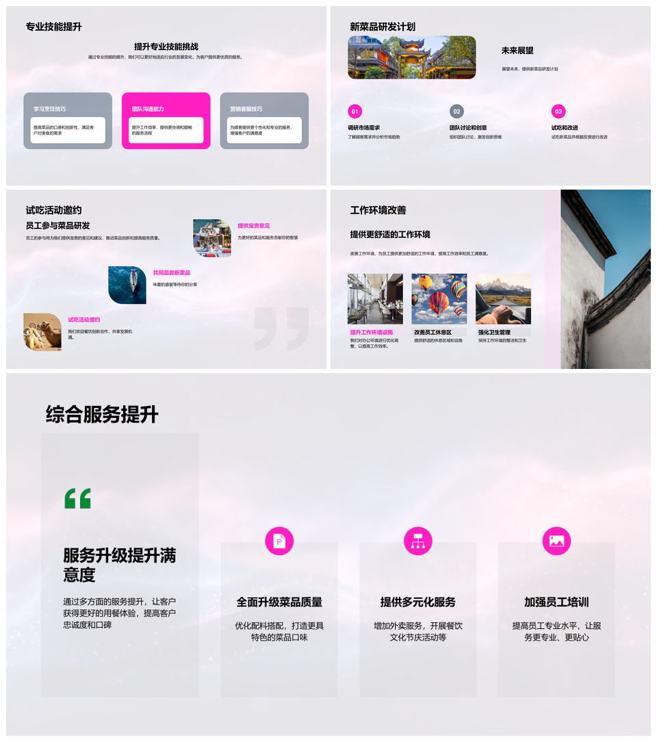 这是一张餐饮半年业绩提升服务质量创新菜单专业培训PPT模板,包含餐饮、半年、业绩、提升、服务、质量、创新、菜单、专业、培训等主题内容,也可用作餐饮半年业绩提升、业绩提升服务质量创新、提升服务质量创新菜单、服务质量创新菜单专业、创新菜单专业培训餐饮、专业培训餐饮半年业绩、餐饮服务创新菜单提升、半年业绩提升专业培训、业绩提升服务质量专业、服务质量专业培训创新、专业培训创新菜单质量、餐饮半年服务质量提升、提升质量创新专业培训、创新菜单培训服务质量、服务质量提升专业餐饮等PPT场景使用。 风云办公提供的餐饮半年业绩提升服务质量创新菜单专业培训PPT模板,下载格式为pptx,一共33页,作品中文字及图均可以修改和编辑,图片更改请在作品中右键图片并更换,文字修改请直接点击文字进行修改。