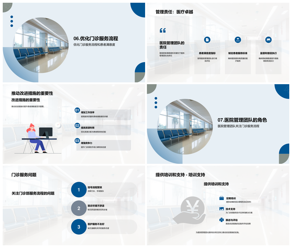 风云办公提供的医患同心优化门诊服务流程提满意度PPT模板,下载格式为pptx,一共24页,作品中文字及图均可以修改和编辑,图片更改请在作品中右键图片并更换,文字修改请直接点击文字进行修改。