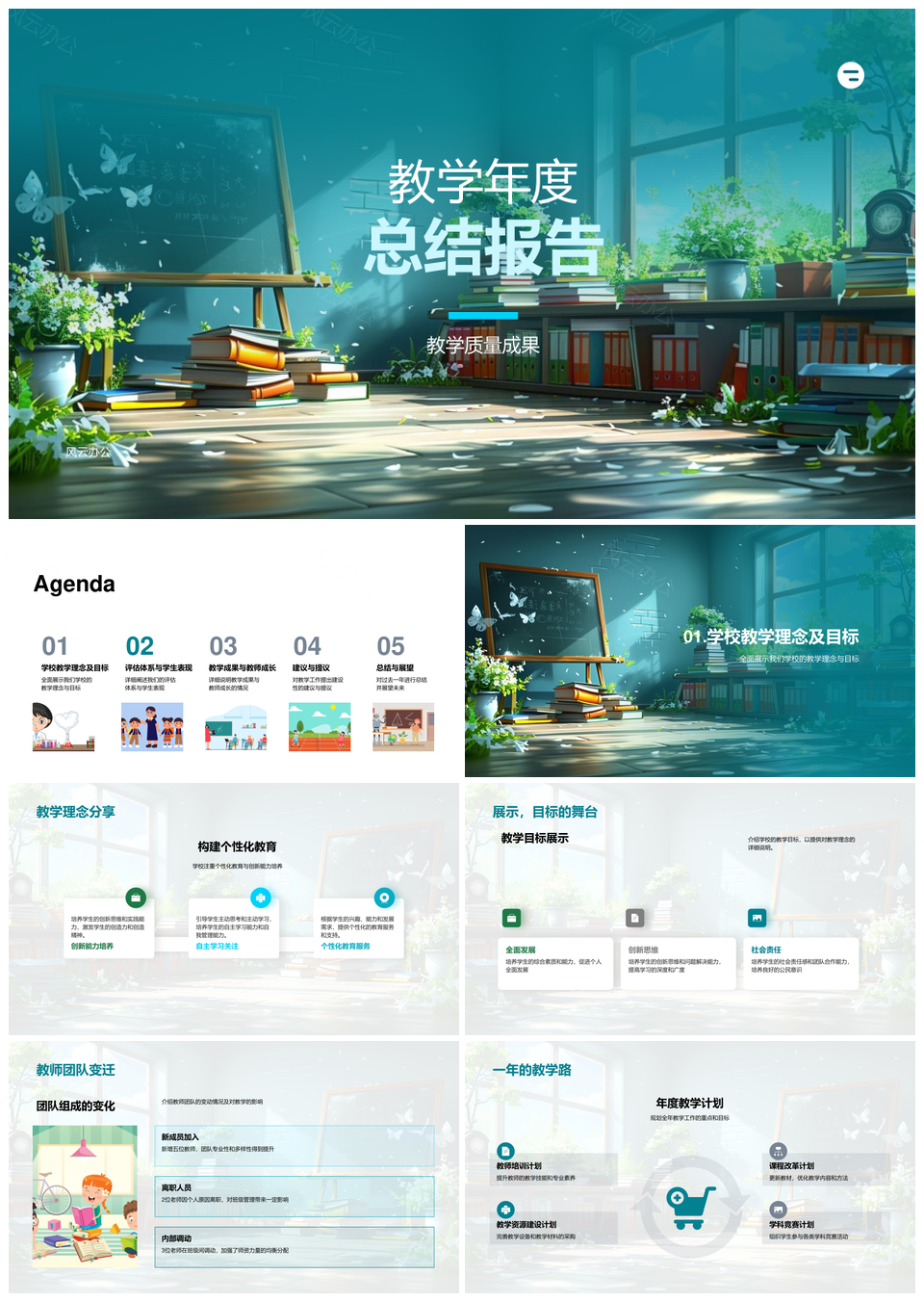 这是一张教学年度总结成果培训评估学生团队计划挑战理念PPT模板,包含教学年度、总结、成果、培训、评估、学生、团队、计划、挑战、理念等主题内容,也可用作教学年度总结成果培训、年度总结成果培训评估、总结成果培训评估学生、教学成果培训评估学生、成果培训评估学生团队、培训评估学生团队计划、教学年度总结成果、年度总结成果培训、总结成果培训评估、教学成果培训评估、成果培训评估学生、培训评估学生团队、评估学生团队计划、学生团队计划挑战、团队计划挑战理念等PPT场景使用。 风云办公提供的教学年度总结成果培训评估学生团队计划挑战理念PPT模板,下载格式为pptx,一共33页,作品中文字及图均可以修改和编辑,图片更改请在作品中右键图片并更换,文字修改请直接点击文字进行修改。