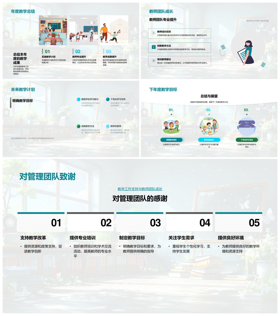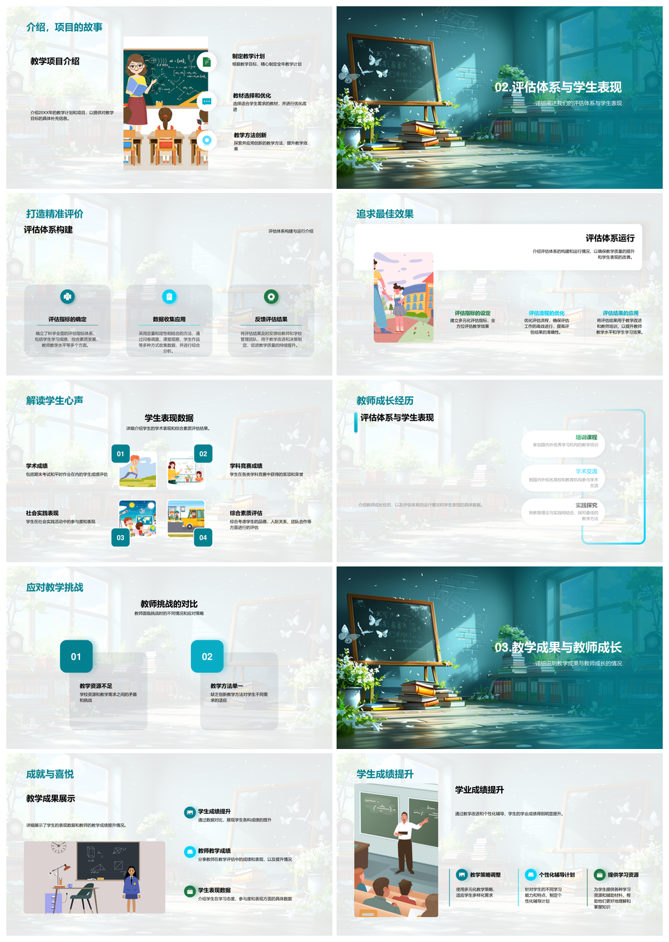 教学年度总结成果培训评估学生团队计划挑战理念PPT模板推荐