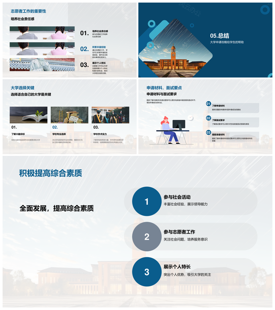 大学申请全攻略材料面试陈述推荐信作品集流程节点PPT模板