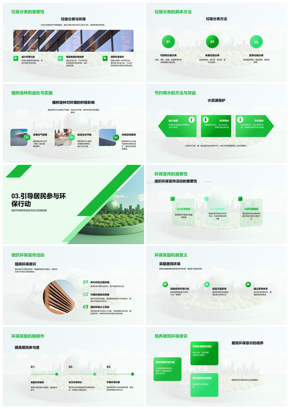 风云办公提供的居民共建环保家园参与垃圾分类行动PPT模板,下载格式为pptx,一共31页,作品中文字及图均可以修改和编辑,图片更改请在作品中右键图片并更换,文字修改请直接点击文字进行修改。