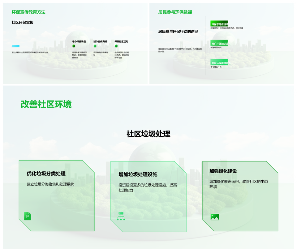 这是一张居民共建环保家园参与垃圾分类行动PPT模板,包含居民、共建、环保家园、参与、垃圾分类、行动等主题内容,也可用作居民共建环保家园、环保家园参与垃圾分类、居民共建环保、共建环保家园、参与垃圾分类行动、居民参与垃圾分类、居民共建家园、居民共建、共建环保、环保家园、参与垃圾分类、垃圾分类行动、居民参与、共建家园、居民环保等PPT场景使用。