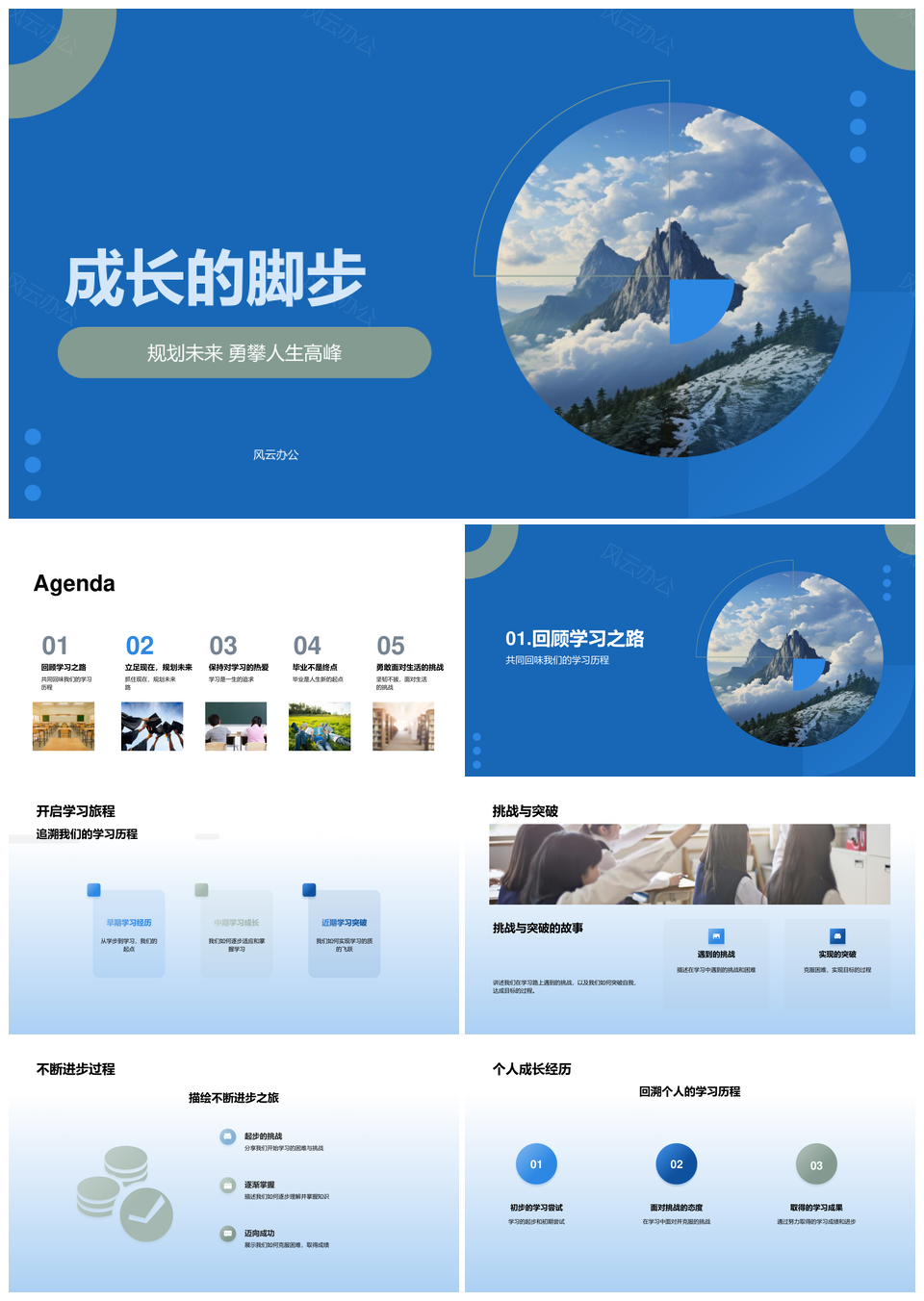 风云办公提供的成长脚步规划未来勇攀人生高峰PPT模板,下载格式为pptx,一共33页,作品中文字及图均可以修改和编辑,图片更改请在作品中右键图片并更换,文字修改请直接点击文字进行修改。