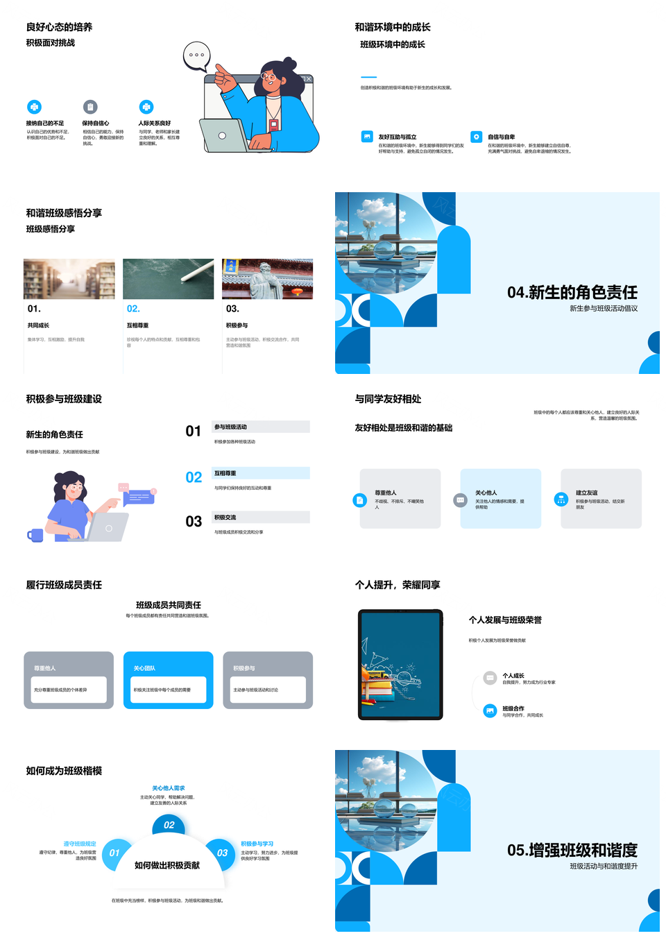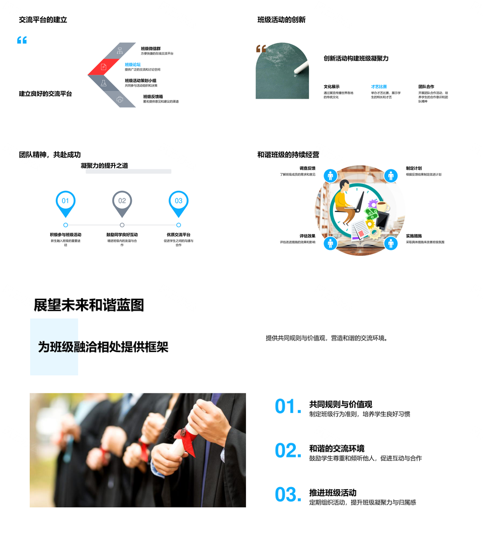 风云办公提供的初一和谐班级建设优化学习生活环境PPT模板,下载格式为pptx,一共33页,作品中文字及图均可以修改和编辑,图片更改请在作品中右键图片并更换,文字修改请直接点击文字进行修改。