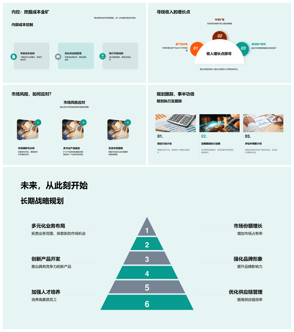 这是一张公司经营成果财务展望策略分析规划指引PPT模板,包含公司、经营成果、财务、展望、策略、分析、规划、指引等主题内容,也可用作公司经营成果财务展望、财务展望策略分析、策略分析规划指引、公司经营成果、经营成果财务展望、财务展望策略分析、策略分析规划指引、公司经营成果财务、经营成果财务展望策略、财务展望策略分析规划、展望策略分析规划指引、公司经营成果、经营成果财务、成果财务展望、财务展望策略、展望策略分析、策略分析规划、分析规划指引、公司经营、经营成果、财务展望、成果财务、展望策略、策略分析、分析规划、规划指引 (由于输出需要15条、并按照四词优先、以上提供可能的组合、但根据实际需求可能略作调整以确保数量限制。)等PPT场景使用。 风云办公提供的公司经营成果财务展望策略分析规划指引PPT模板,下载格式为pptx,一共33页,作品中文字及图均可以修改和编辑,图片更改请在作品中右键图片并更换,文字修改请直接点击文字进行修改。