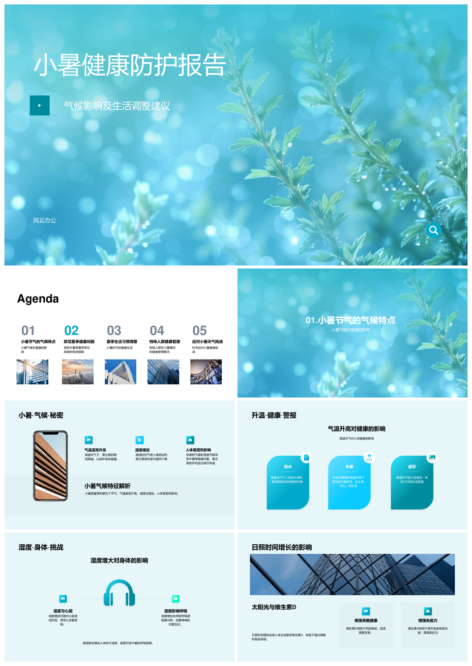 风云办公提供的小暑气候健康防暑消食居民生活调整PPT模板,下载格式为pptx,一共33页,作品中文字及图均可以修改和编辑,图片更改请在作品中右键图片并更换,文字修改请直接点击文字进行修改。