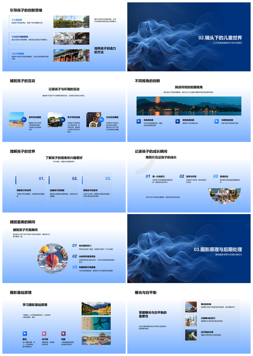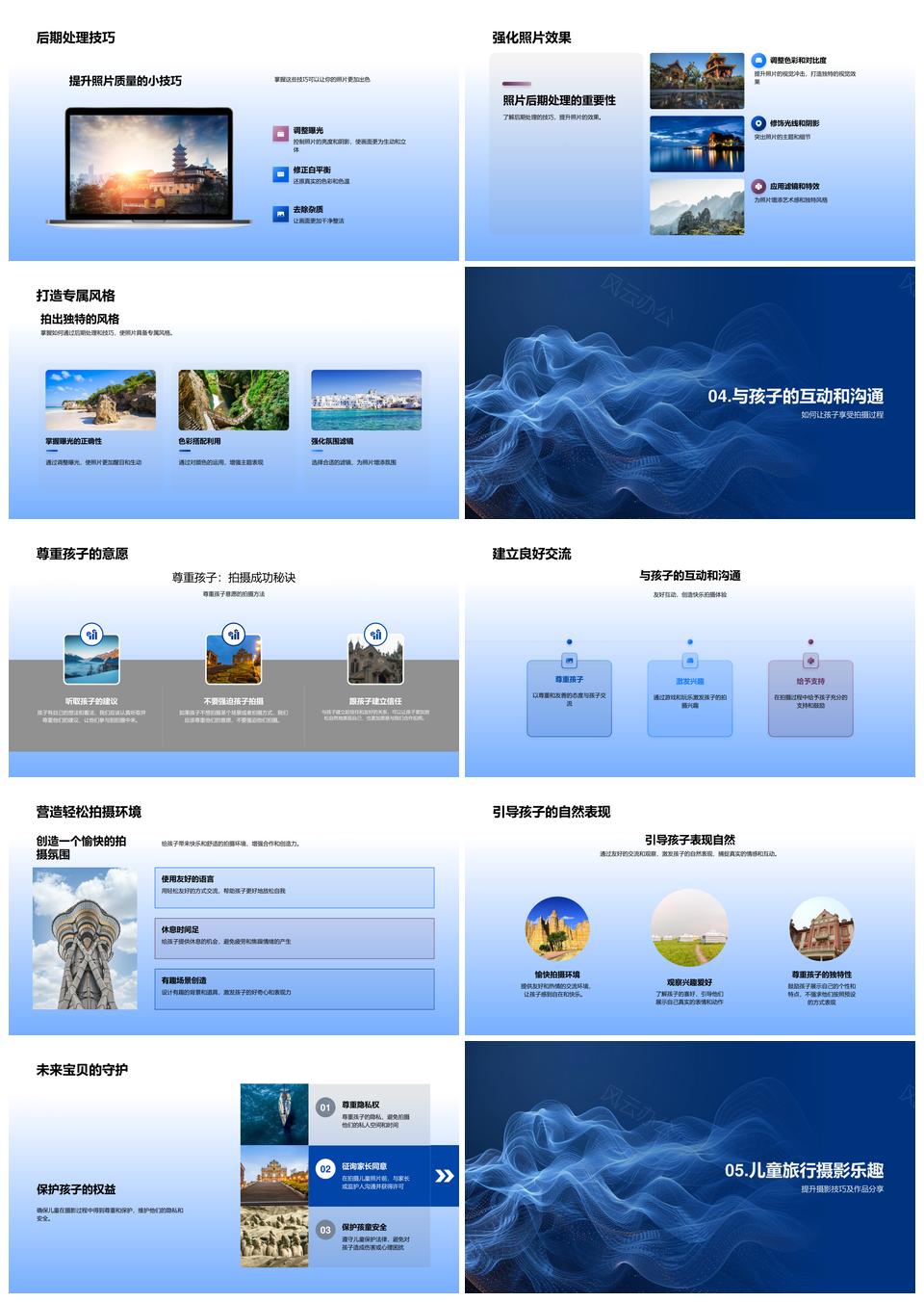 儿童旅行摄影技巧后期处理分享原理互动角度距离曝光PPT模板推荐