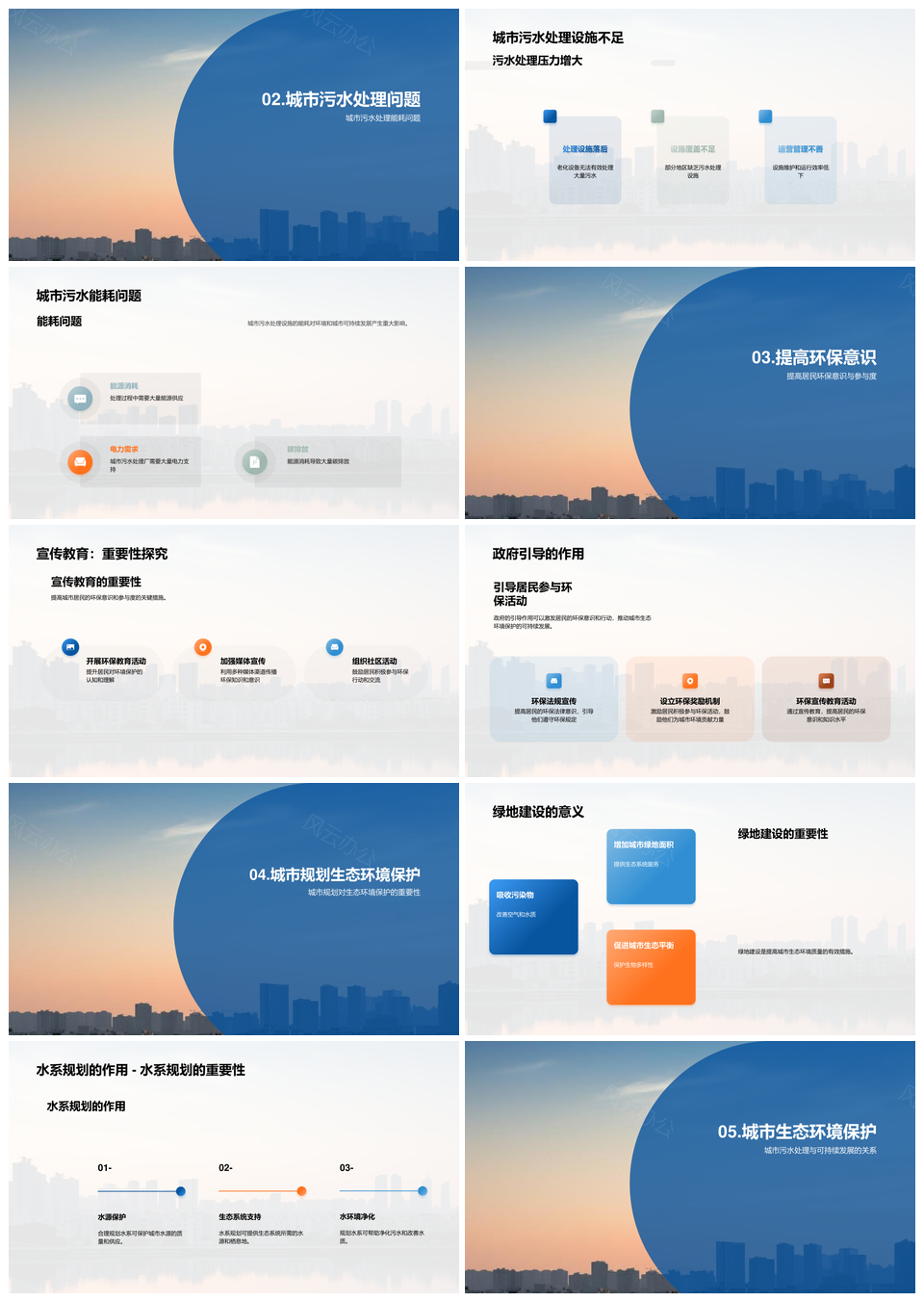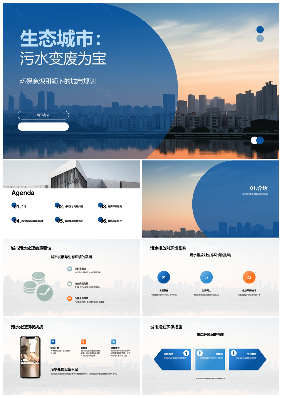 风云办公提供的生态城市污水再生利用与天际线共建PPT模板,下载格式为pptx,一共25页,作品中文字及图均可以修改和编辑,图片更改请在作品中右键图片并更换,文字修改请直接点击文字进行修改。