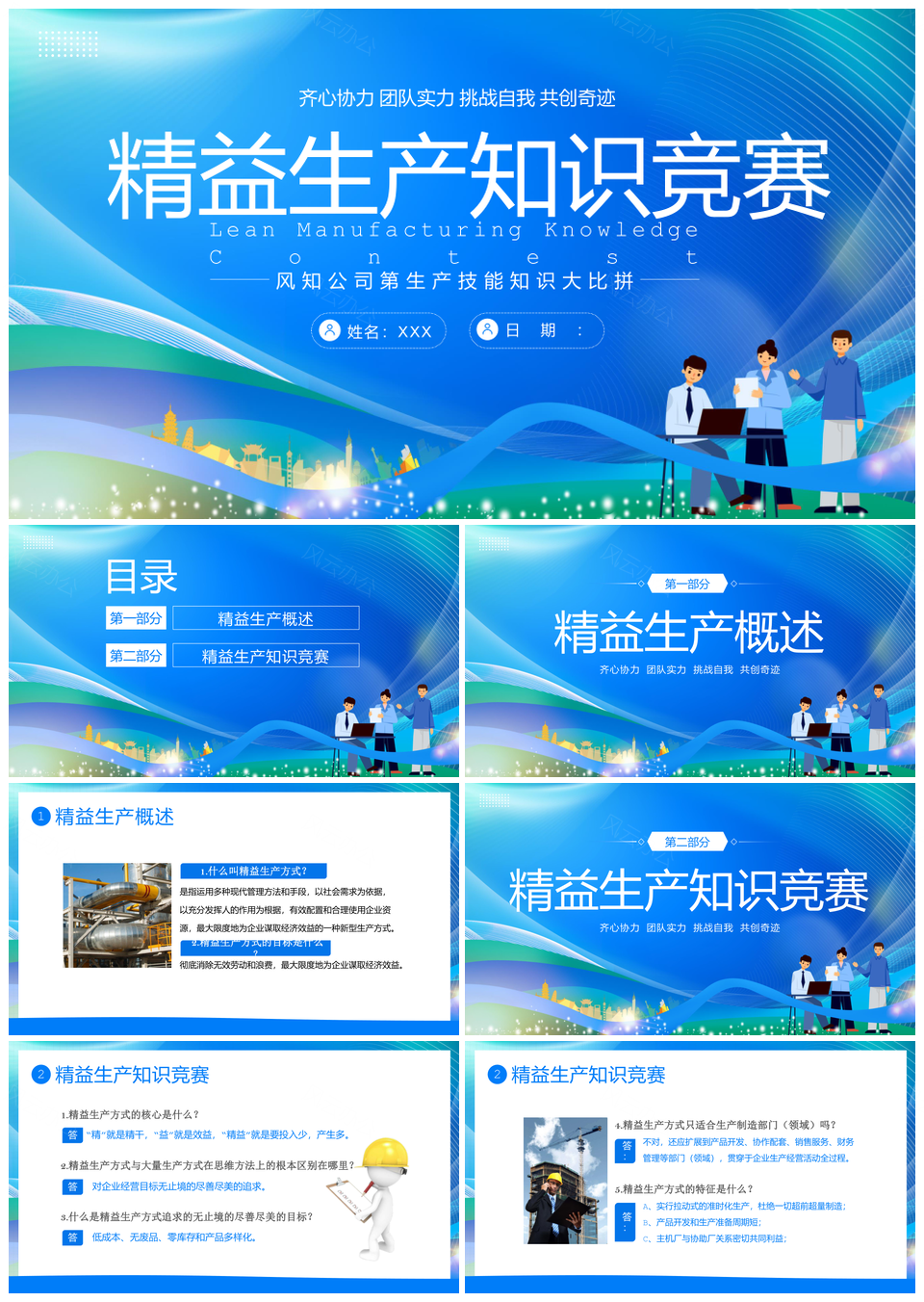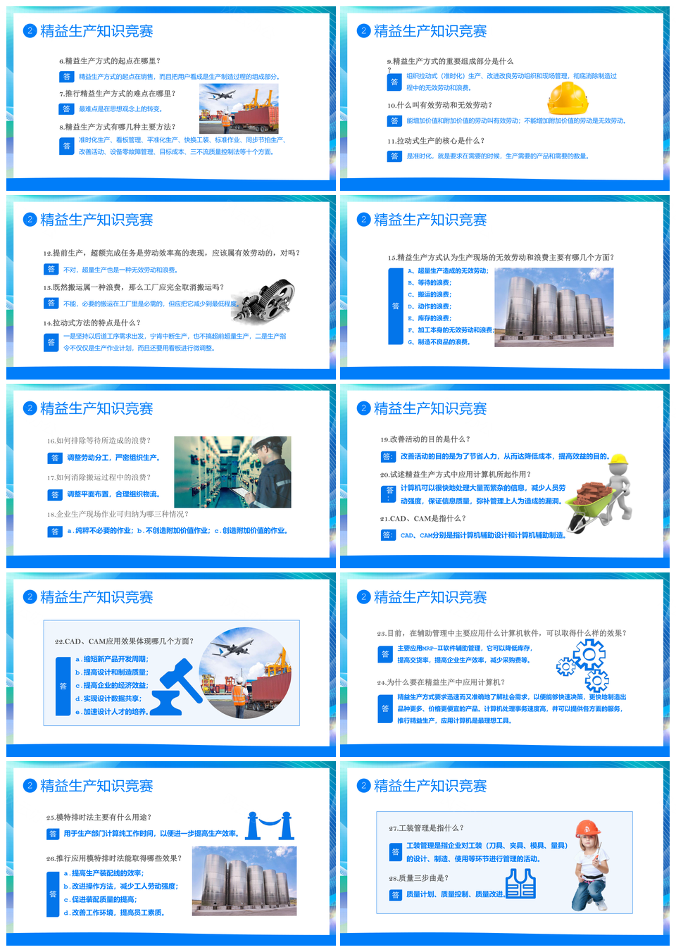 2023精益生产知识竞赛6SIE手法八大浪费PPT模板推荐