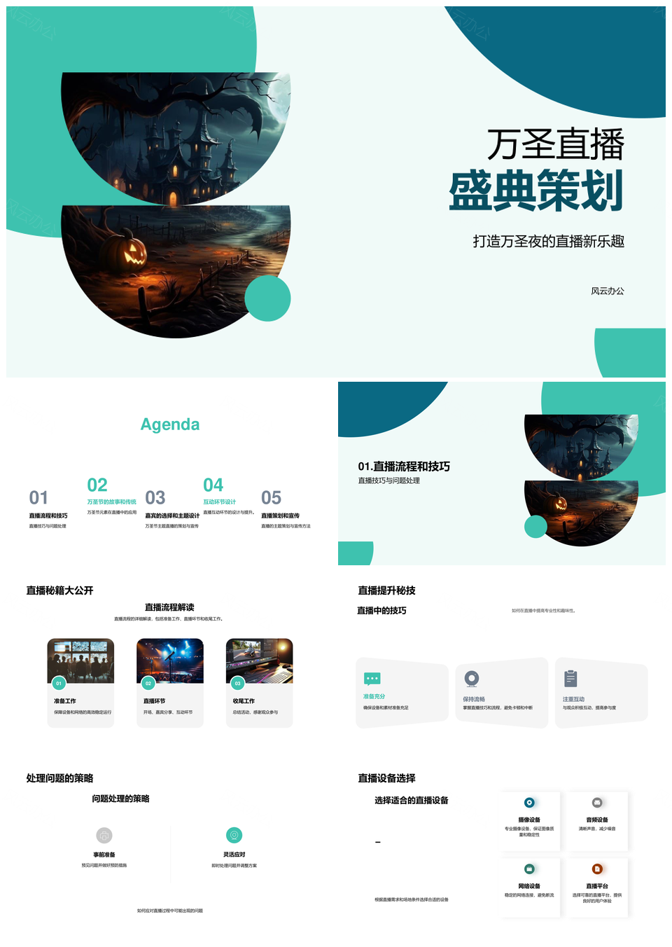 风云办公提供的万圣节直播策划互动嘉宾习俗宣传技巧PPT模板,下载格式为pptx,一共30页,作品中文字及图均可以修改和编辑,图片更改请在作品中右键图片并更换,文字修改请直接点击文字进行修改。