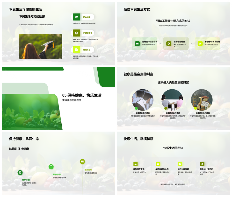健康定义重要性快乐秘诀新鲜水果生活指南PPT模板推荐
