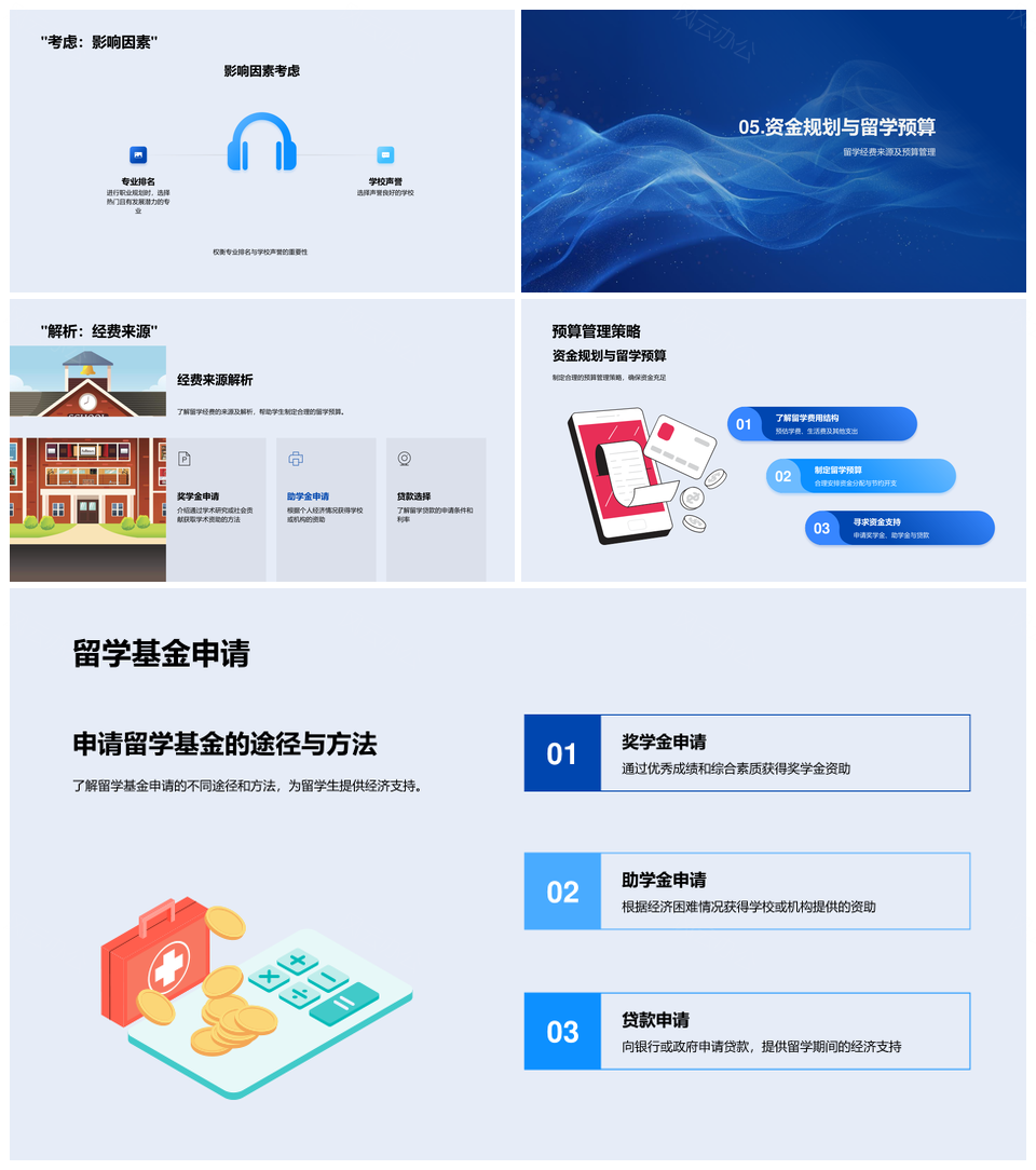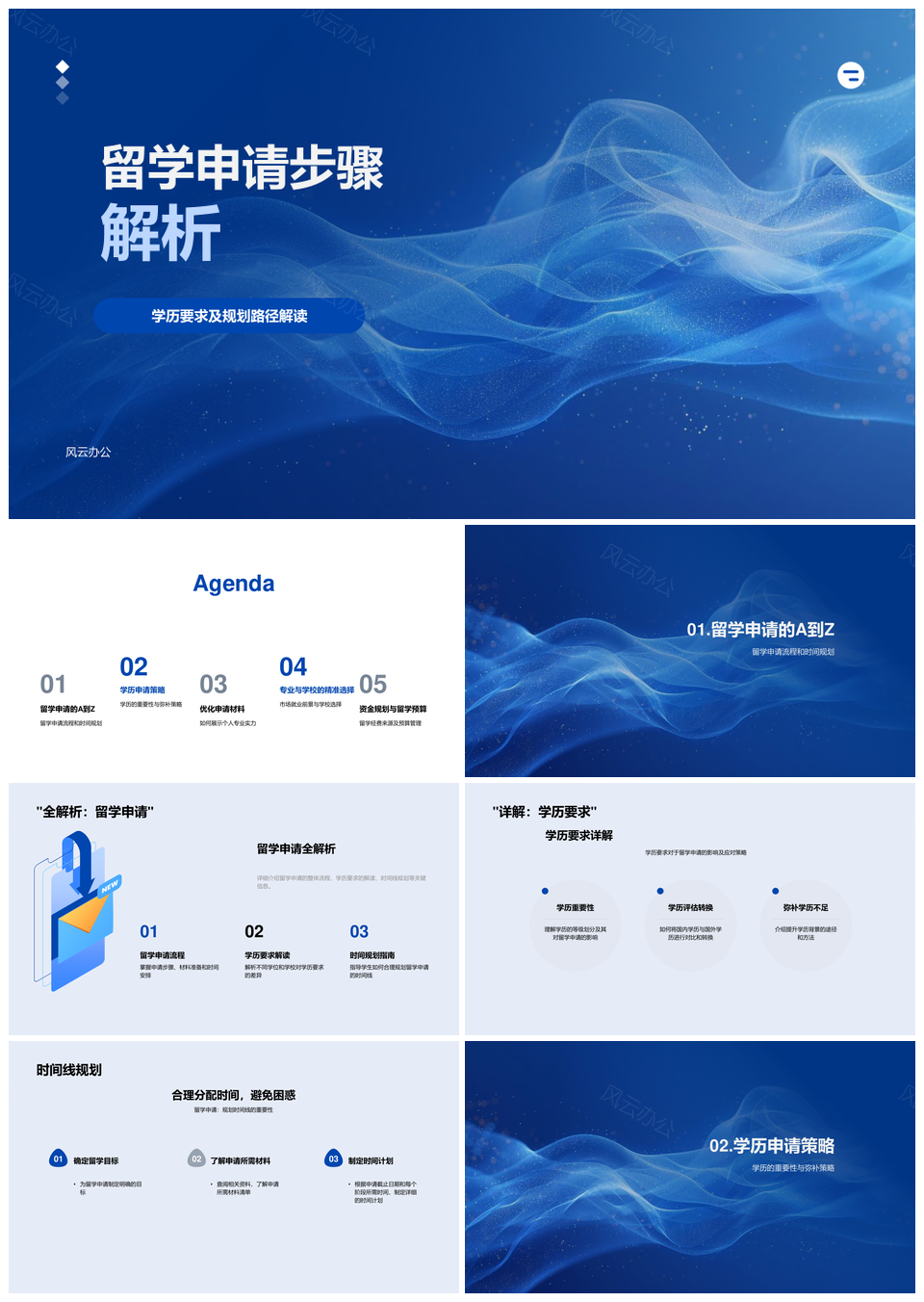 留学申请步骤学历规划专家时间线材料指导PPT模板推荐