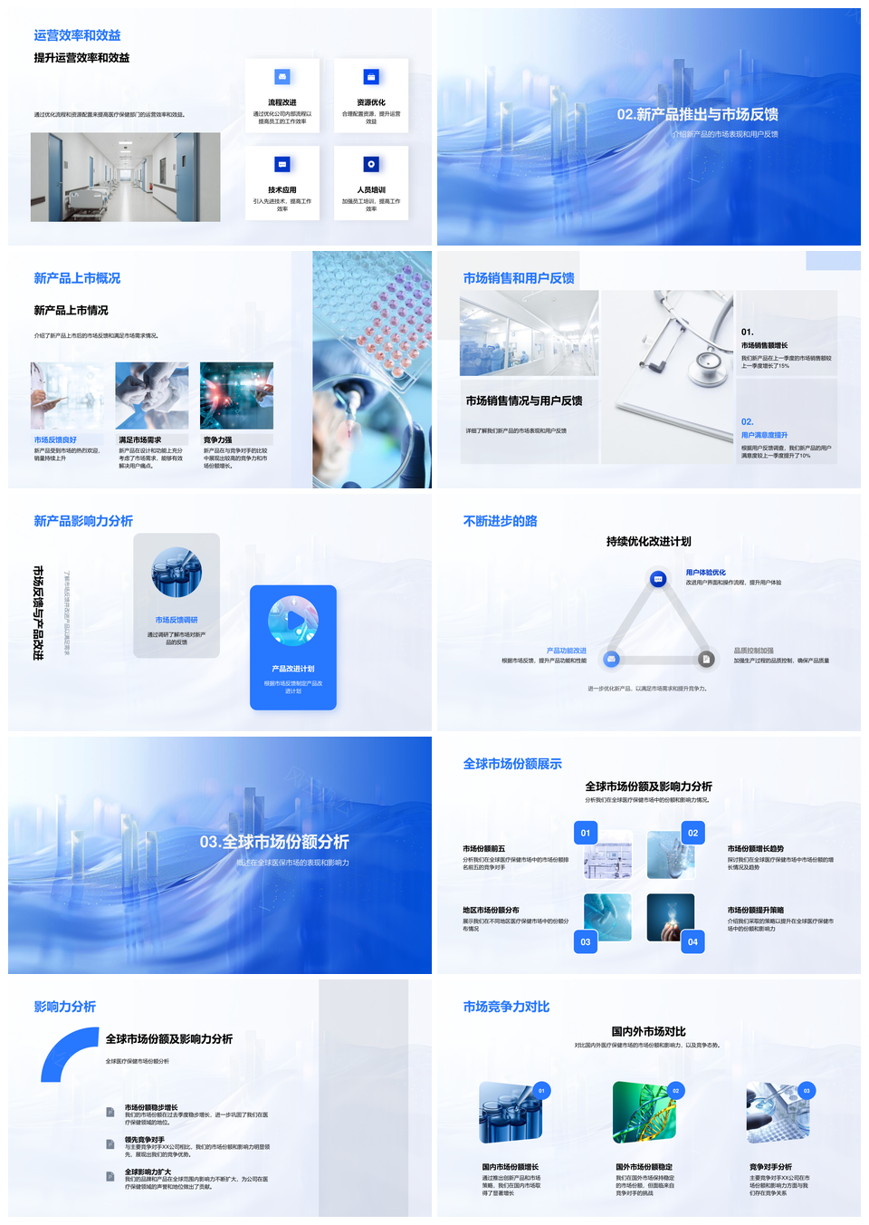 全球医疗保健市场份额动态新品竞争服务成就季度报告PPT模板
