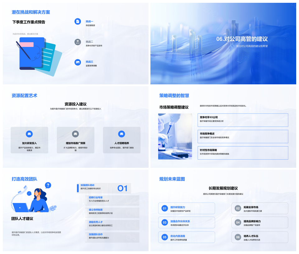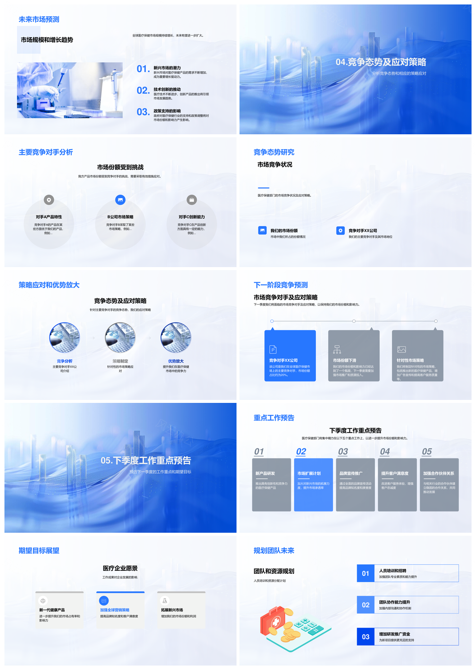 全球医疗保健市场份额动态新品竞争服务成就季度报告PPT模板推荐