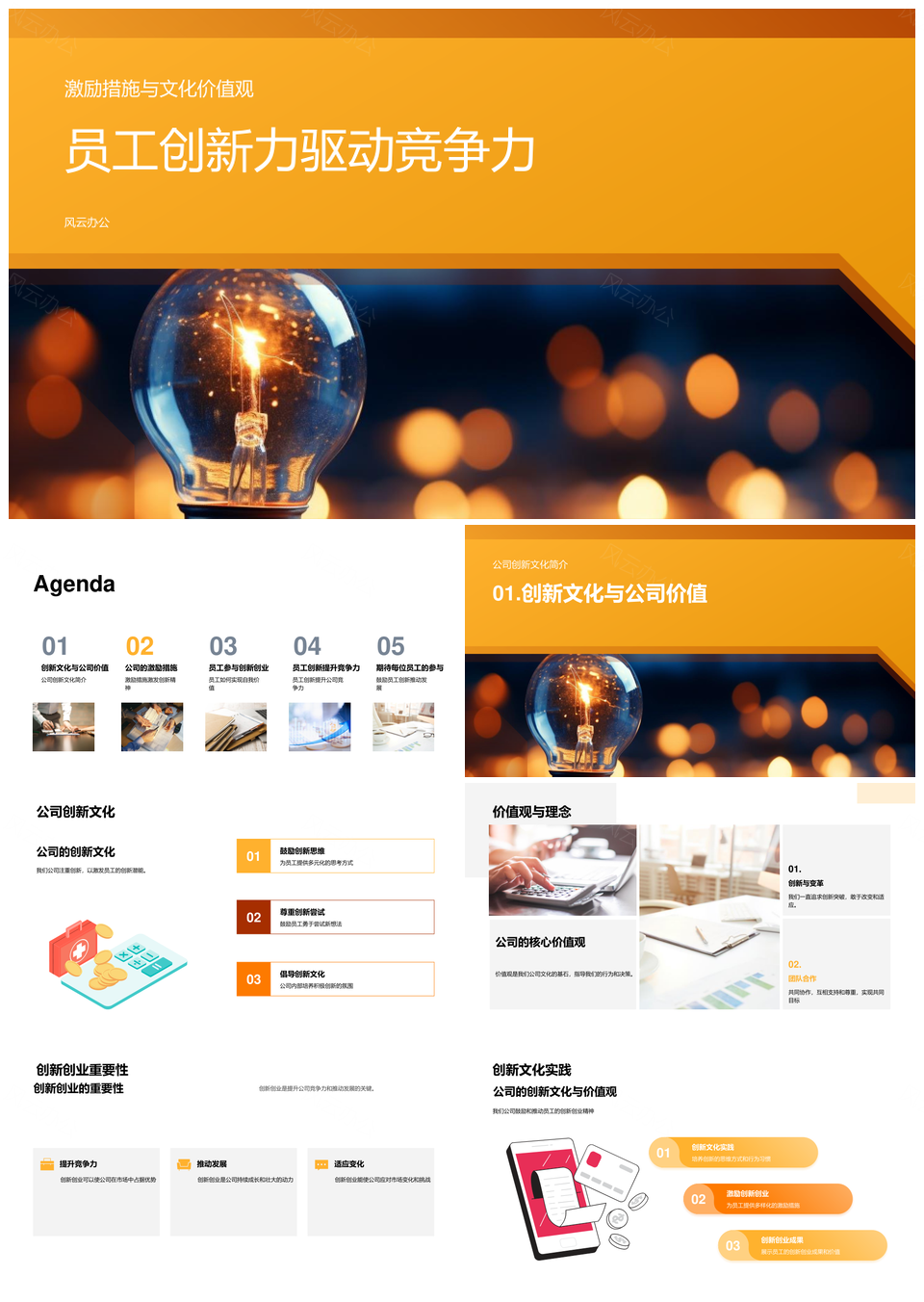风云办公提供的员工创新激励与文化价值观驱动竞争力PPT模板,下载格式为pptx,一共33页,作品中文字及图均可以修改和编辑,图片更改请在作品中右键图片并更换,文字修改请直接点击文字进行修改。