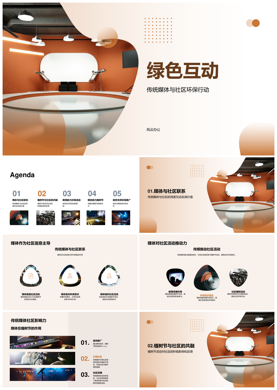 风云办公提供的绿色互动传统媒体助力社区环保植树PPT模板,下载格式为pptx,一共23页,作品中文字及图均可以修改和编辑,图片更改请在作品中右键图片并更换,文字修改请直接点击文字进行修改。