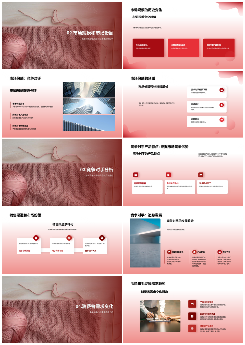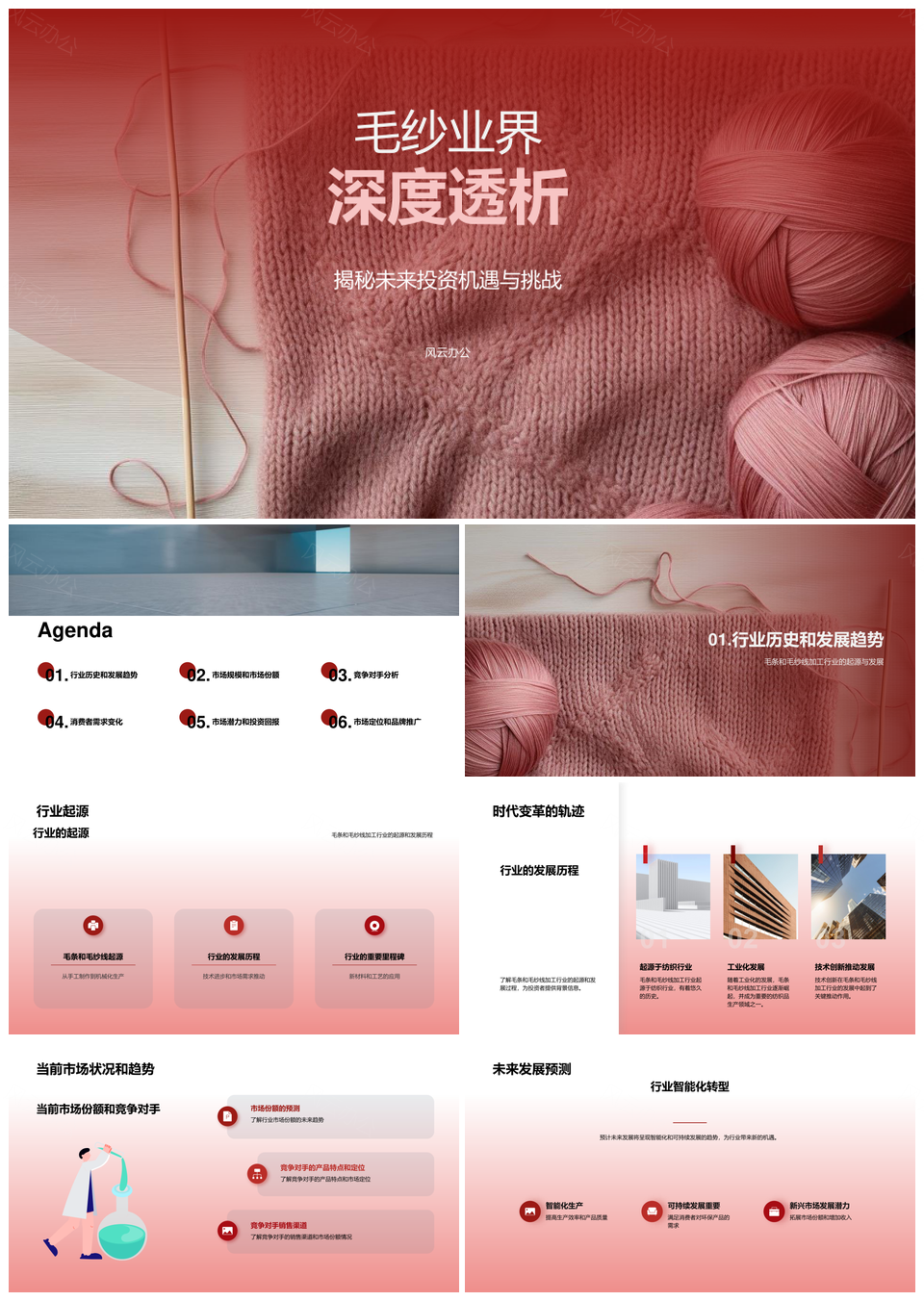 毛条毛纱线加工市场分析前景商业融资计划PPT模板推荐