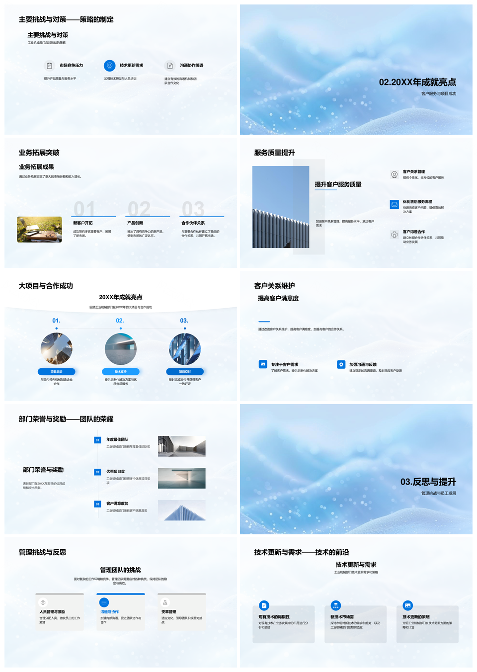 这是一张工业机械年中业务技术管理合作服务报告PPT模板,包含工业、机械、年中、业务、技术、管理、合作、服务、报告等主题内容,也可用作工业机械、年中、业务、技术、管理、合作、服务、报告 工业机械业务技术管理、业务技术管理合作、技术管理合作服务、管理合作服务报告、工业机械年中业务技术、年中业务技术管理、业务技术合作服务、工业机械技术管理合作、技术管理服务报告、工业机械业务合作、年中管理服务、业务技术服务、管理合作报告、技术合作服务、工业机械年中、业务管理、合作服务等PPT场景使用。 风云办公提供的工业机械年中业务技术管理合作服务报告PPT模板,下载格式为pptx,一共33页,作品中文字及图均可以修改和编辑,图片更改请在作品中右键图片并更换,文字修改请直接点击文字进行修改。