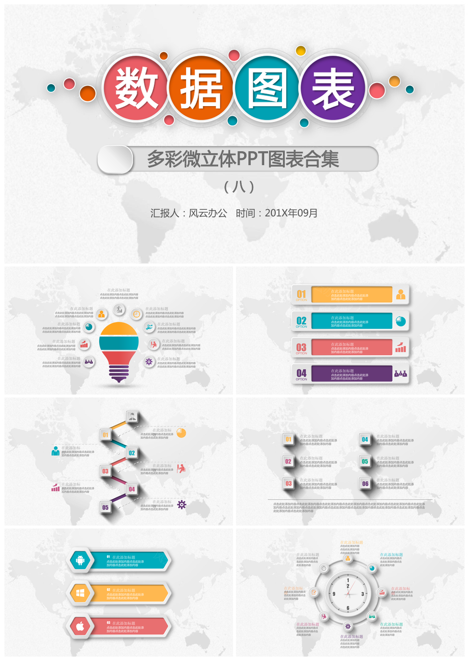 数据图表多彩微立体PPT模板