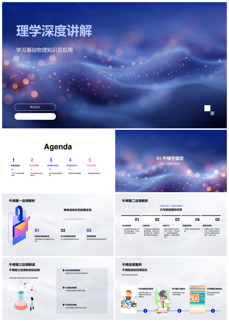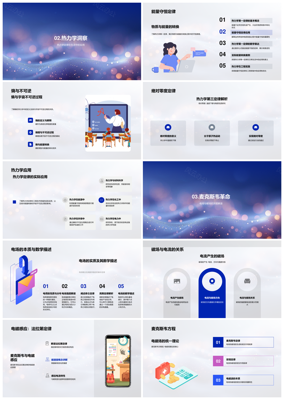 物理学牛顿热力学电磁量子守恒定律解析PPT模板推荐