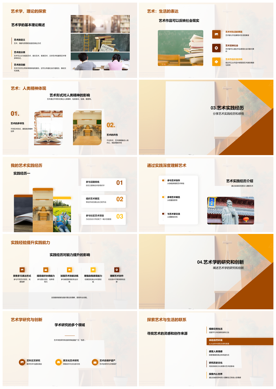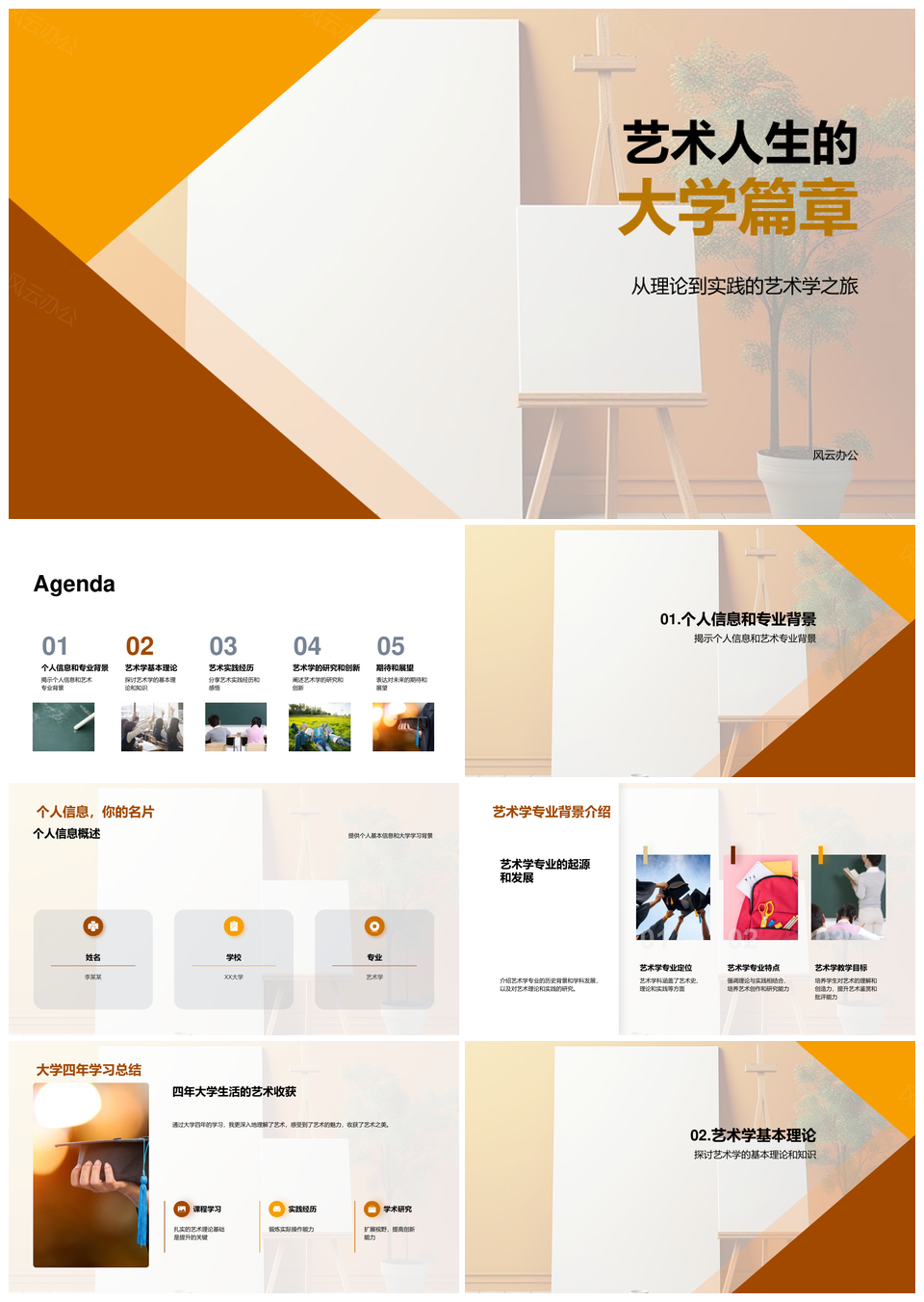 风云办公提供的艺学人生实践探新融生活论PPT模板,下载格式为pptx,一共23页,作品中文字及图均可以修改和编辑,图片更改请在作品中右键图片并更换,文字修改请直接点击文字进行修改。