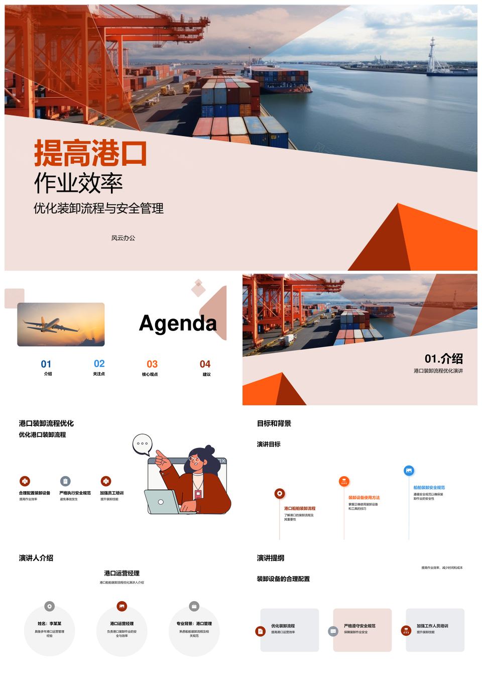 风云办公提供的港口起重机装卸流程优化提效保安全PPT模板,下载格式为pptx,一共20页,作品中文字及图均可以修改和编辑,图片更改请在作品中右键图片并更换,文字修改请直接点击文字进行修改。