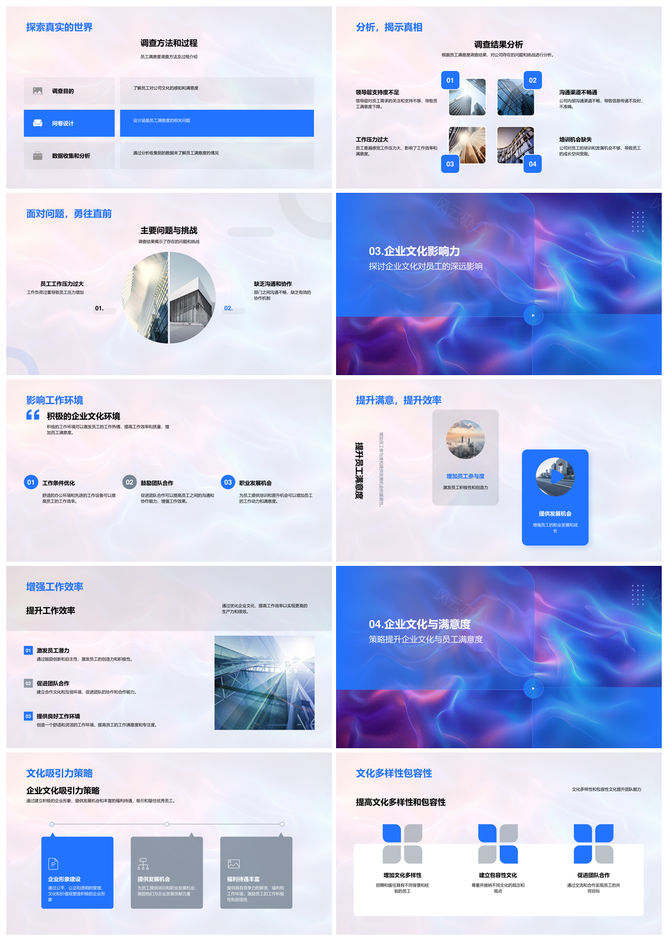 这是一张优化企业文化培训提升满意度效率使命愿景价值观多样性包容调查影响力PPT模板,包含企业文化、培训、满意度、效率、使命、愿景、价值观、多样性、包容、调查、影响力等主题内容,也可用作优化企业文化培训提升、培训提升满意度效率、满意度效率使命愿景、使命愿景价值观多样性、价值观多样性包容调查、包容调查影响力优化、优化企业文化培训、培训提升满意度、满意度效率使命、使命愿景价值观、价值观多样性包容、包容调查影响力、优化企业文化、培训提升、满意度效率等PPT场景使用。 风云办公提供的优化企业文化培训提升满意度效率使命愿景价值观多样性包容调查影响力PPT模板,下载格式为pptx,一共23页,作品中文字及图均可以修改和编辑,图片更改请在作品中右键图片并更换,文字修改请直接点击文字进行修改。