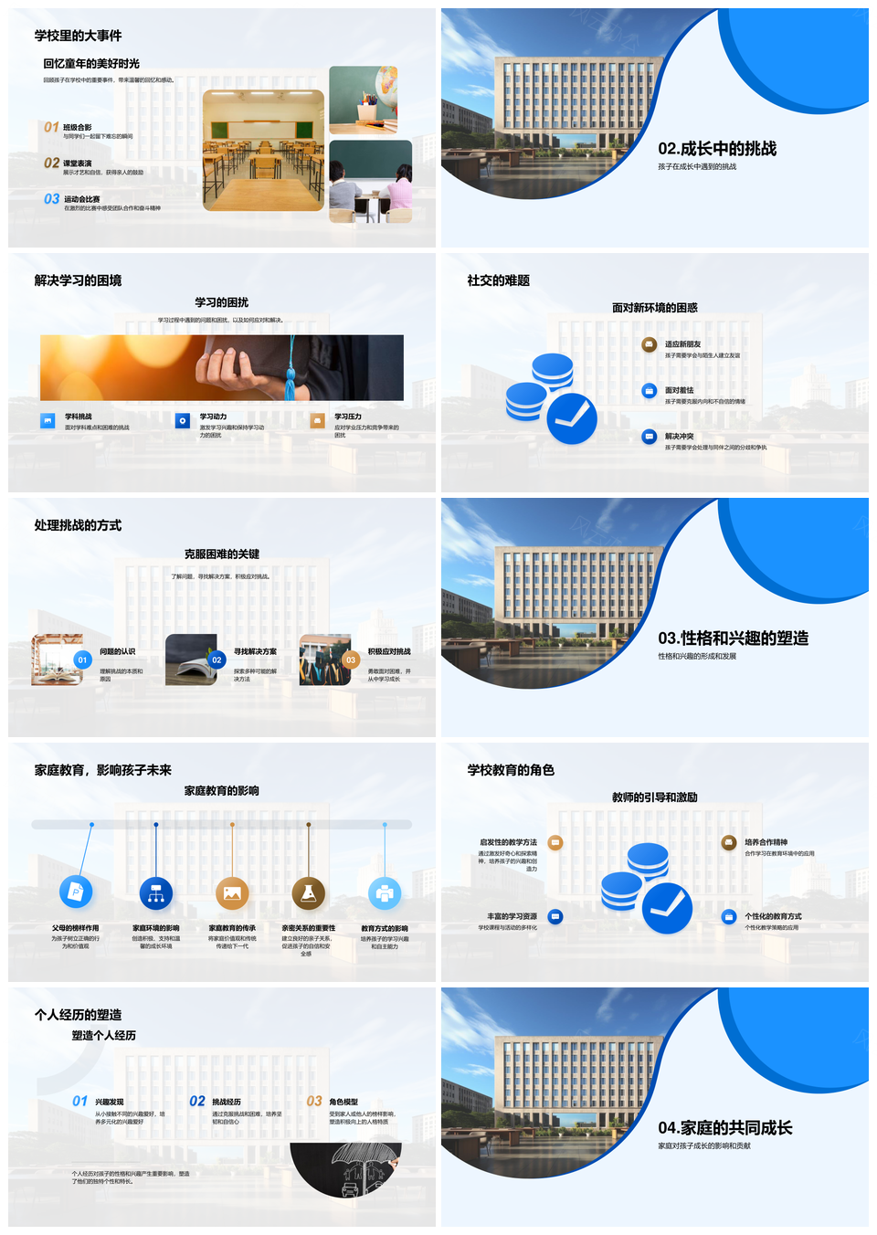 家校共育伴成长挑战塑性格兴趣里程碑PPT模板推荐
